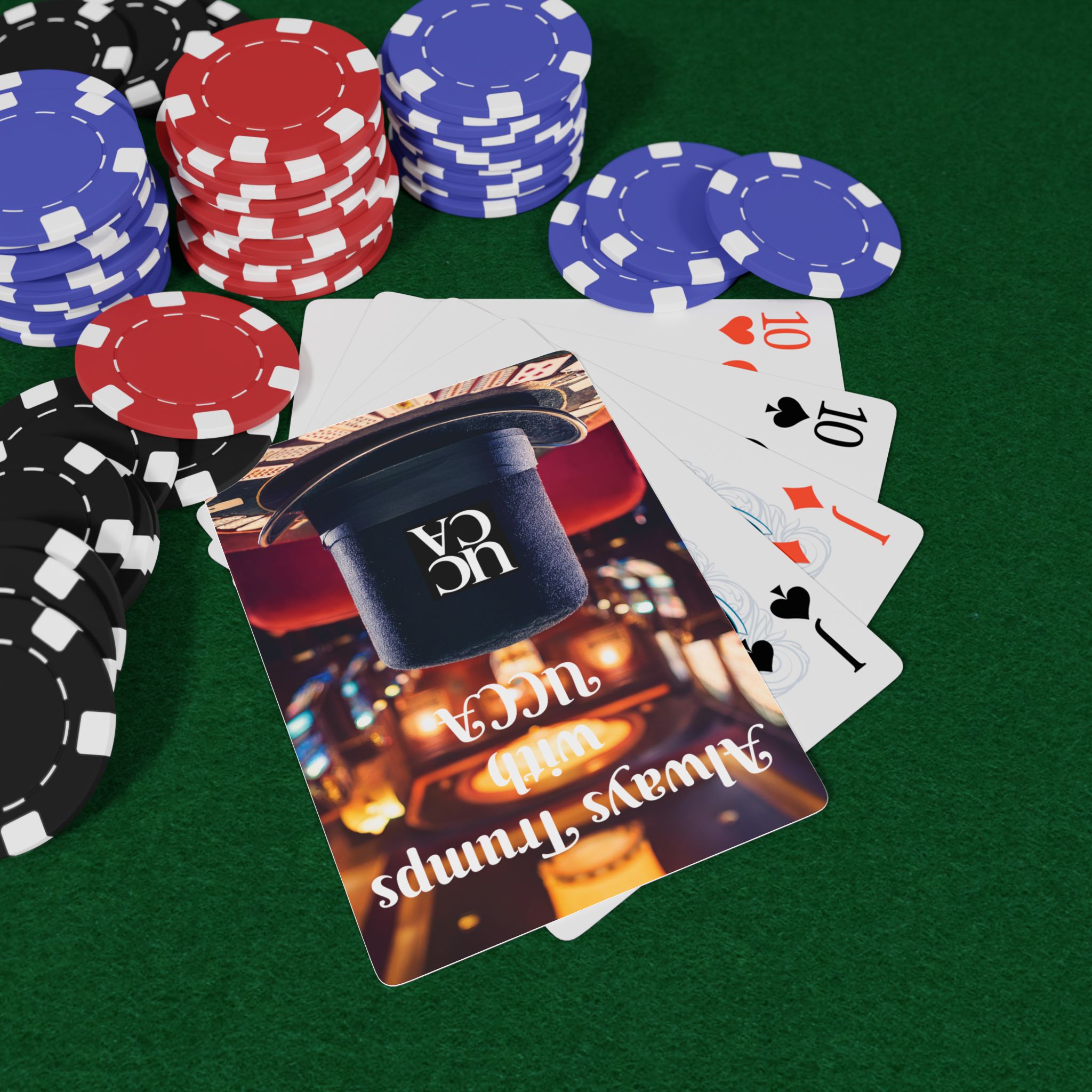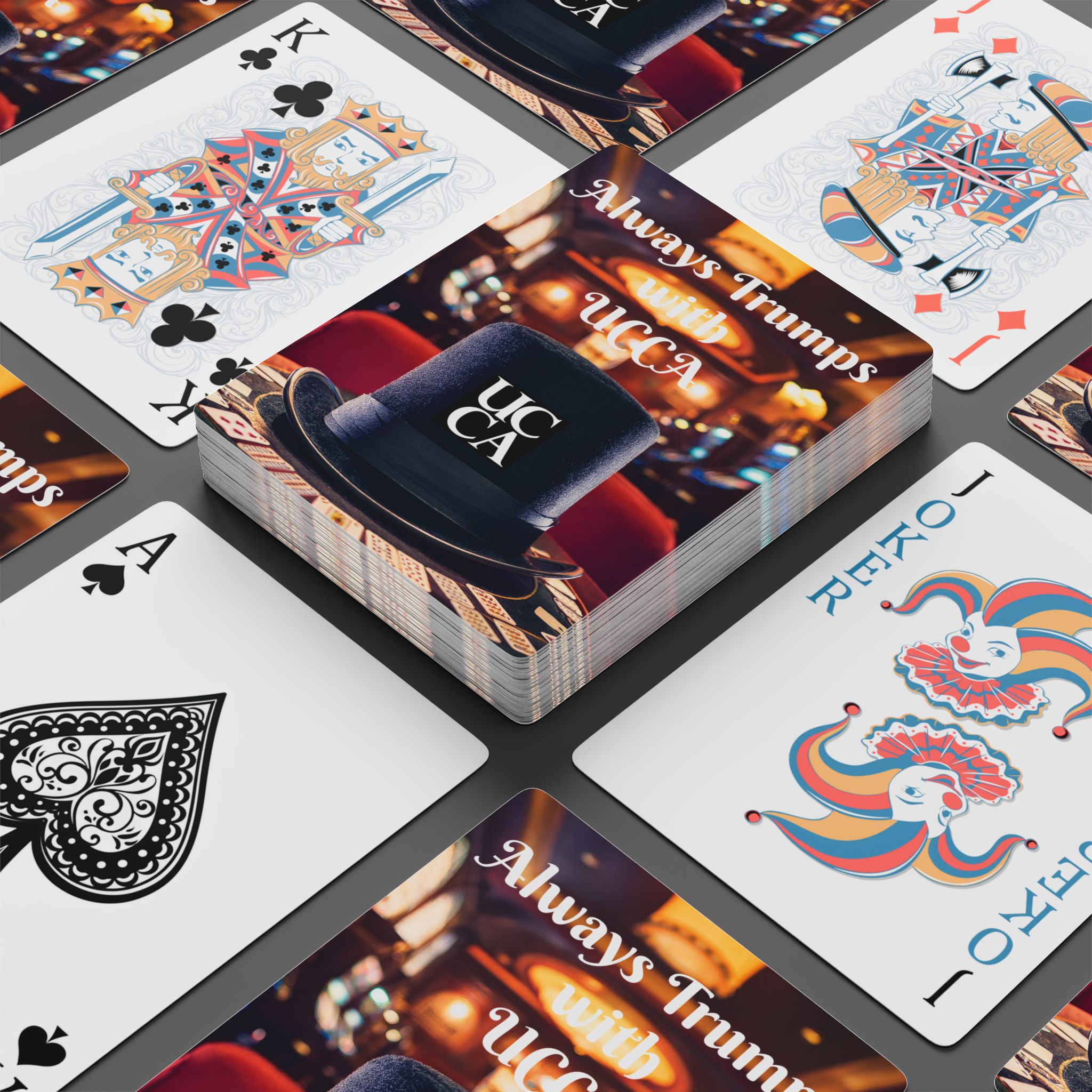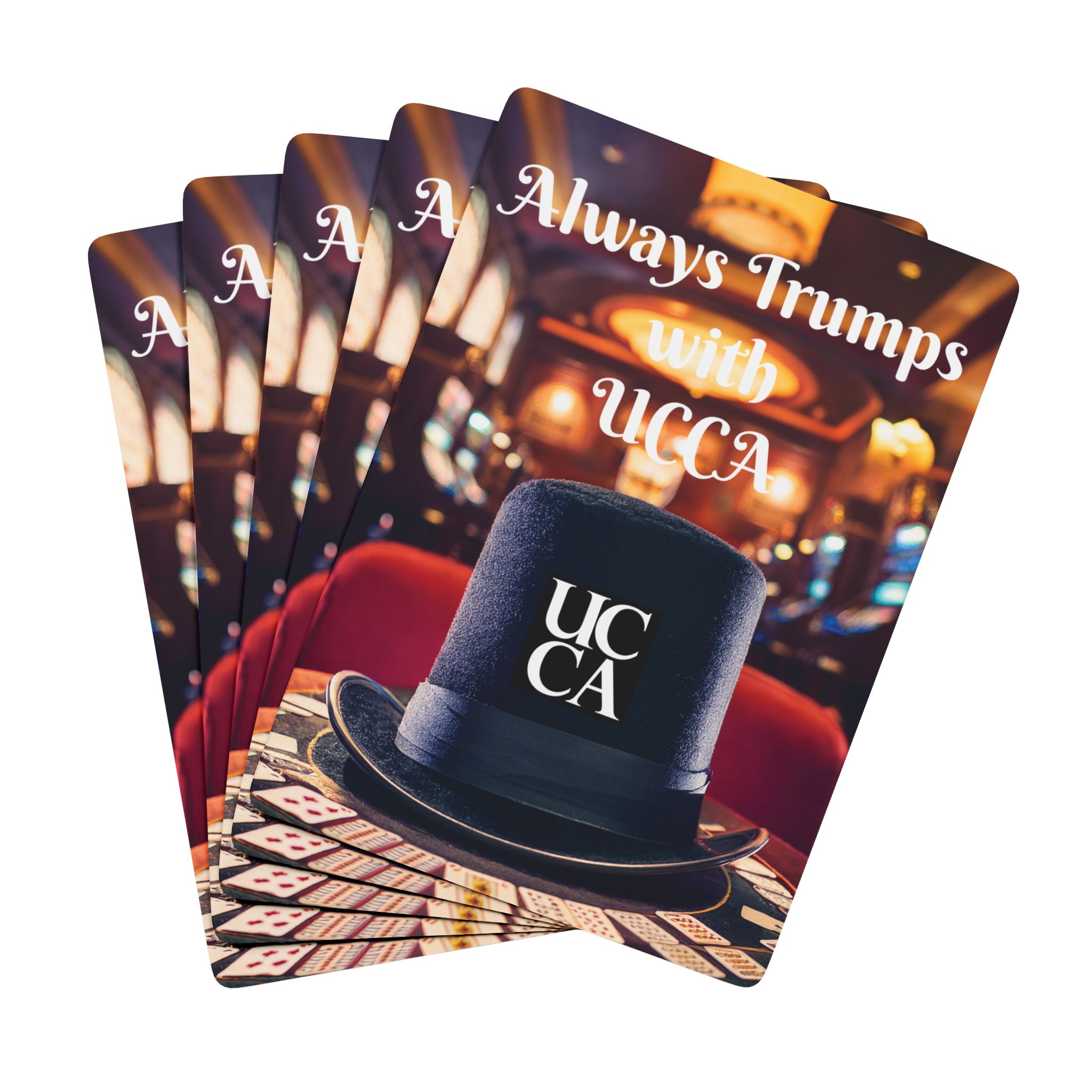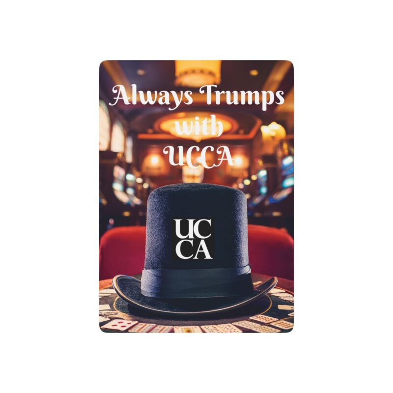 Perfect for poker nights, high-stakes games, or just flexing your unbeatable sense of humor, this deck turns every table into a battleground of wit, charm, and straight-up dominance. And when you throw down the “Always Trumps with UCCA” cards? Let’s just say… the deck was always stacked in your favor.
