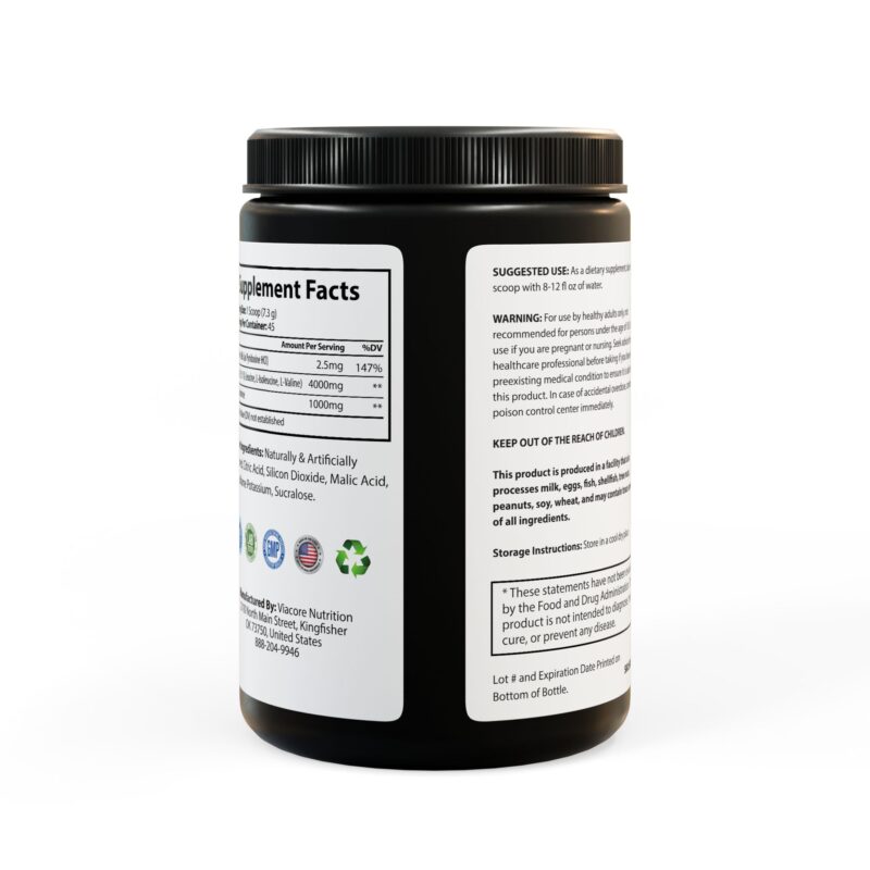 Ingredients: Vitamin B6 (as Pyridoxine HCl), BCAA 2:1:1 (L-Leucine, L-Isoleucine, L-Valine), L-Glutamine. Other Ingredients: Naturally & Artificially Flavored, Citric Acid, Silicon Dioxide, Malic Acid, Acesulfame Potassium, Sucralose.