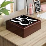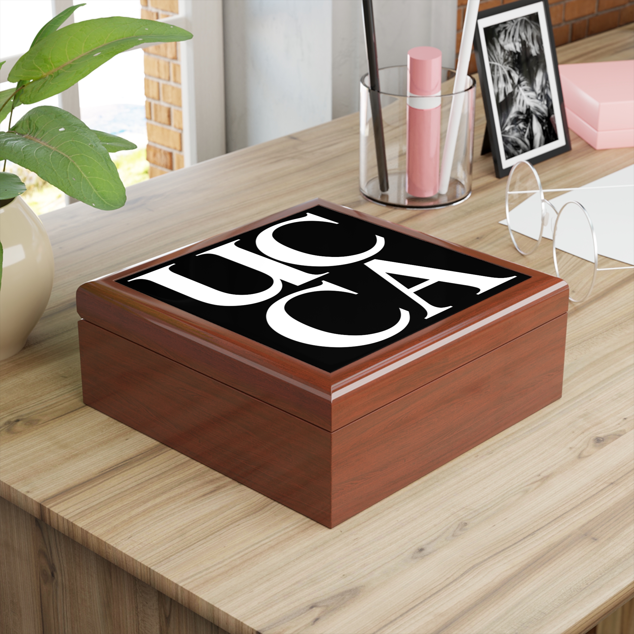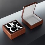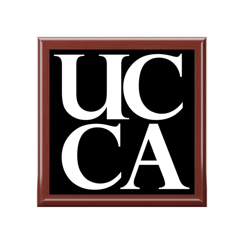 Keep your valuables secure in timeless style with this sleek UCCA-branded jewelry box. Featuring the iconic UCCA logo on the lid, this box is perfect for adding a modern and sophisticated touch to your dresser or desk. Whether storing your jewelry, keepsakes, or small essentials, this box is as practical as it is stylish.