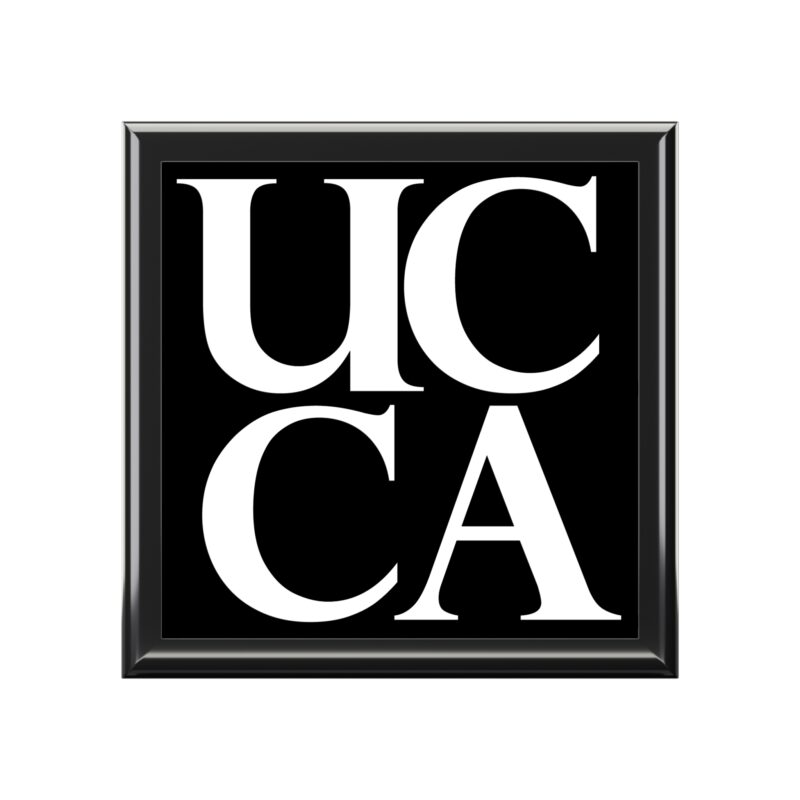 Celebrate functionality and bold design with this UCCA-branded jewelry box. Add it to your collection today and organize your treasures with flair!