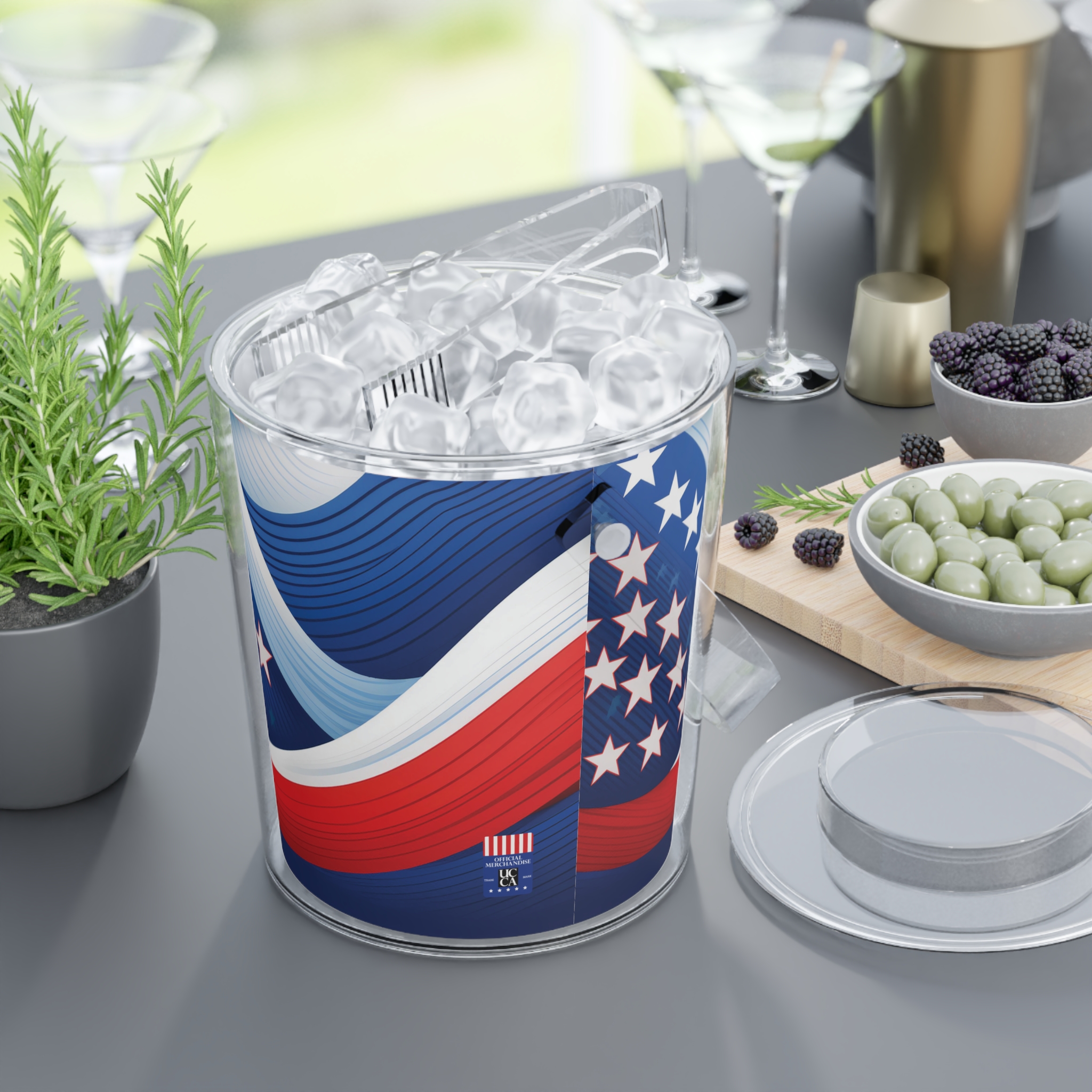 Keep your drinks as cool as your style with the Bold & Brave UCCA Ice Bucket, the ultimate accessory for gatherings that demand both frosty beverages and serious flair. Featuring the striking stars-and-stripes-inspired design of the Bold & Brave collection, this ice bucket turns every drink station into a centerpiece of conversation.