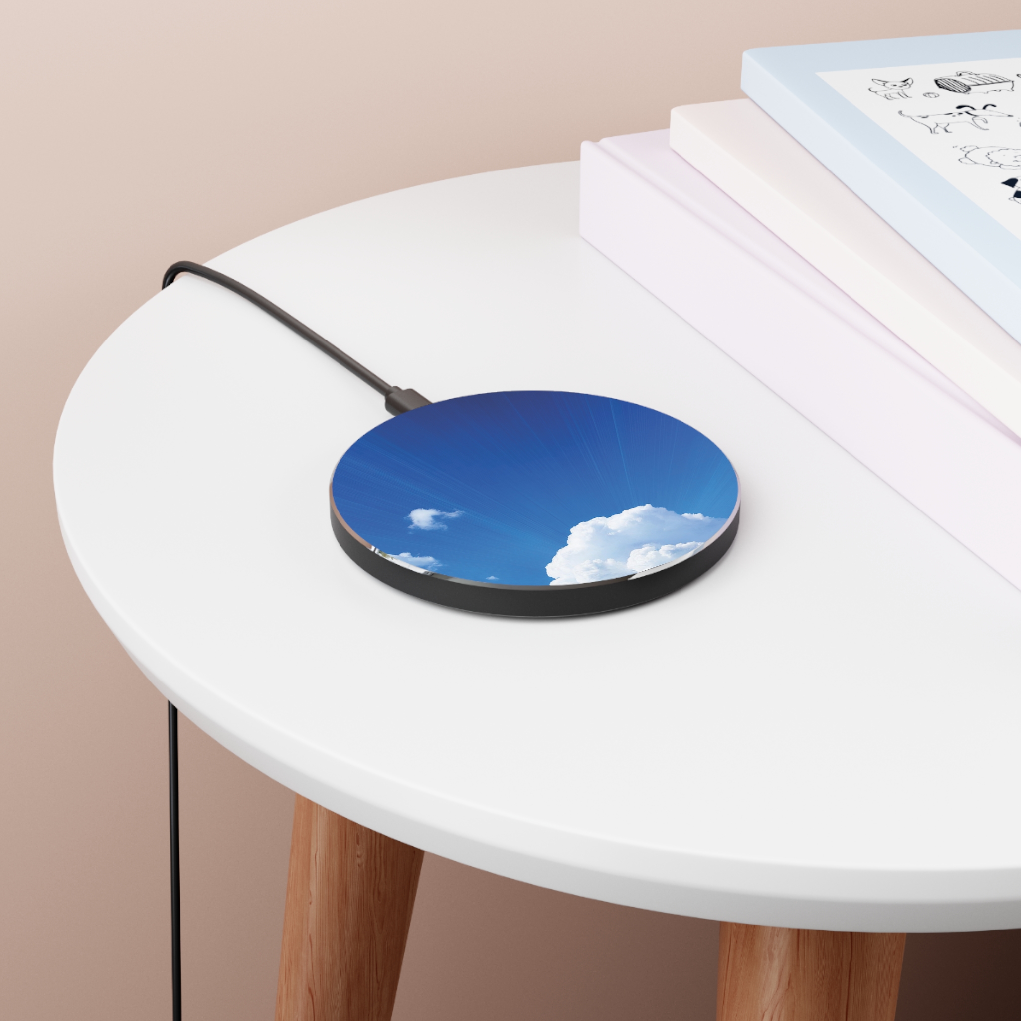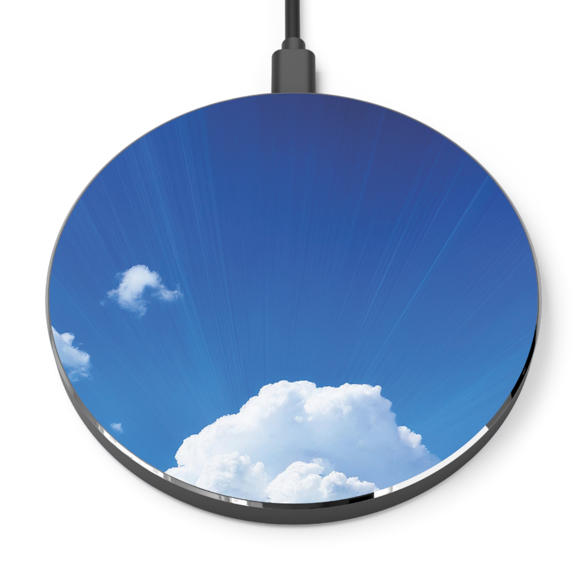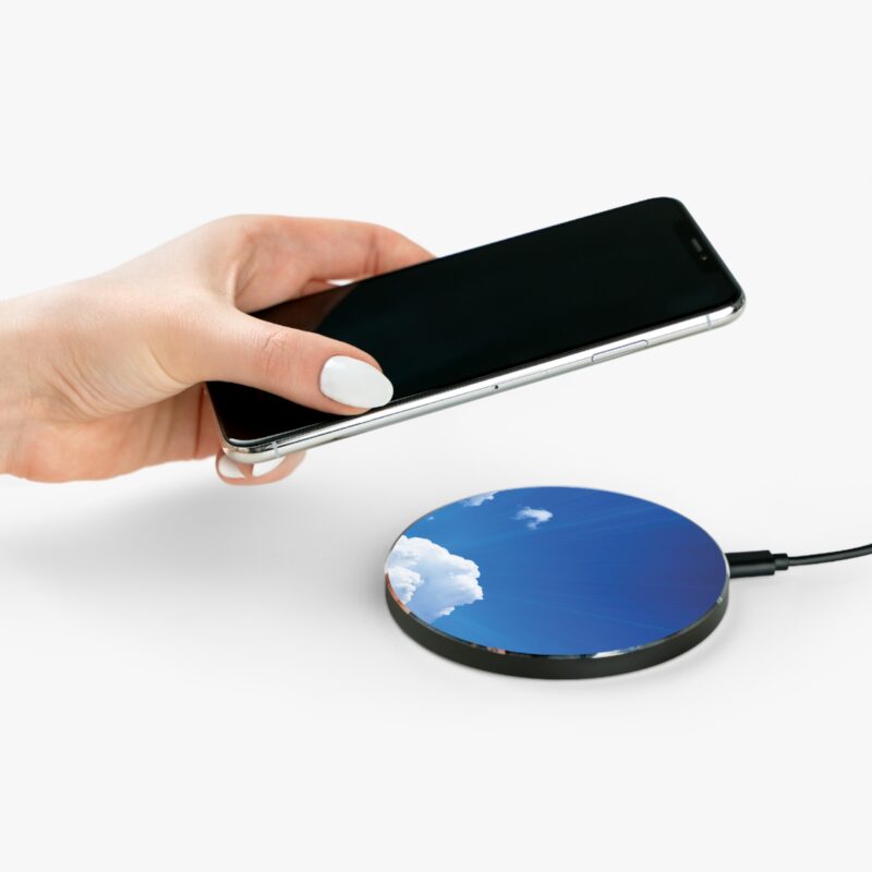 Stay charged while enjoying the calming beauty of a clear sky. Whether at work or home, this charger adds a touch of peace to your tech setup.