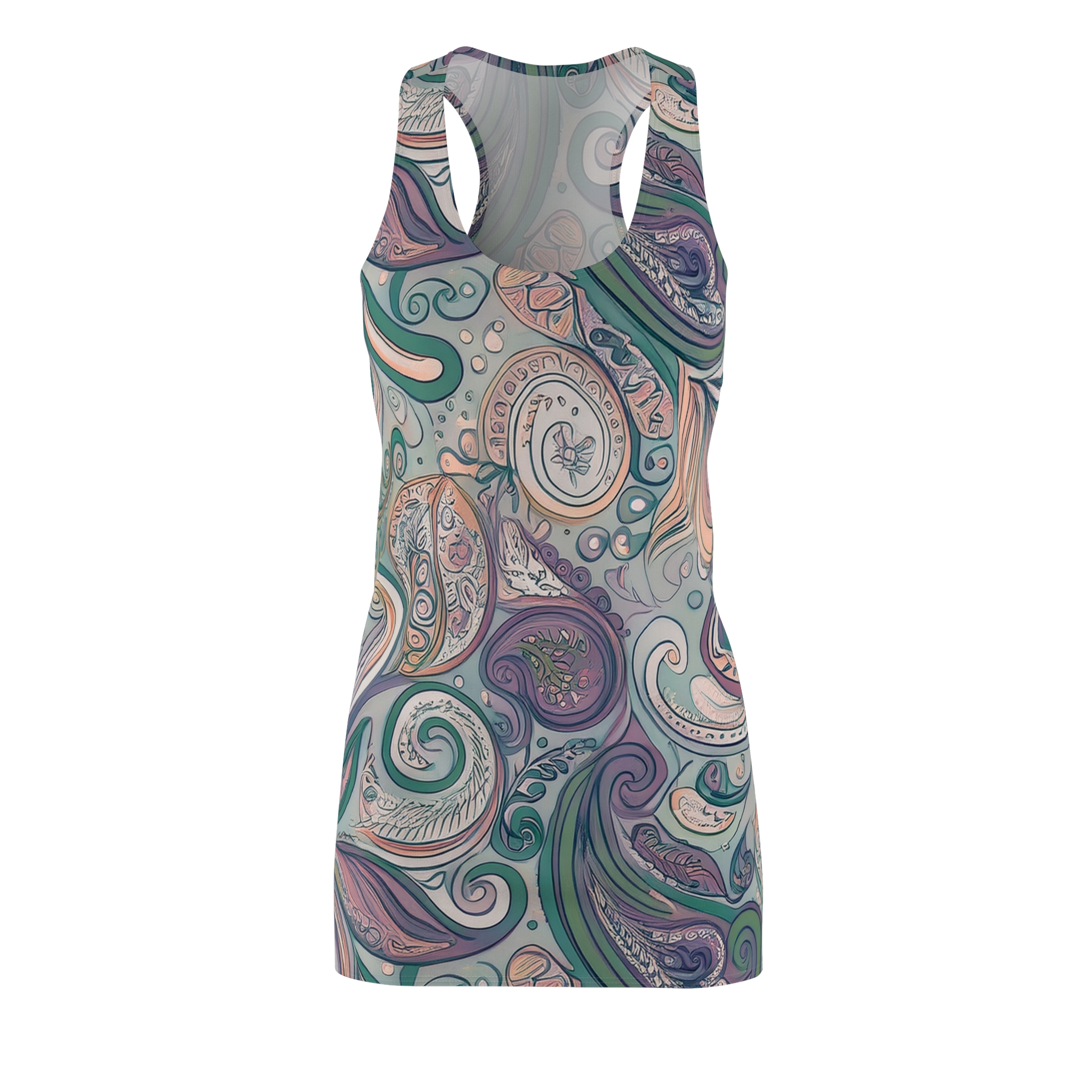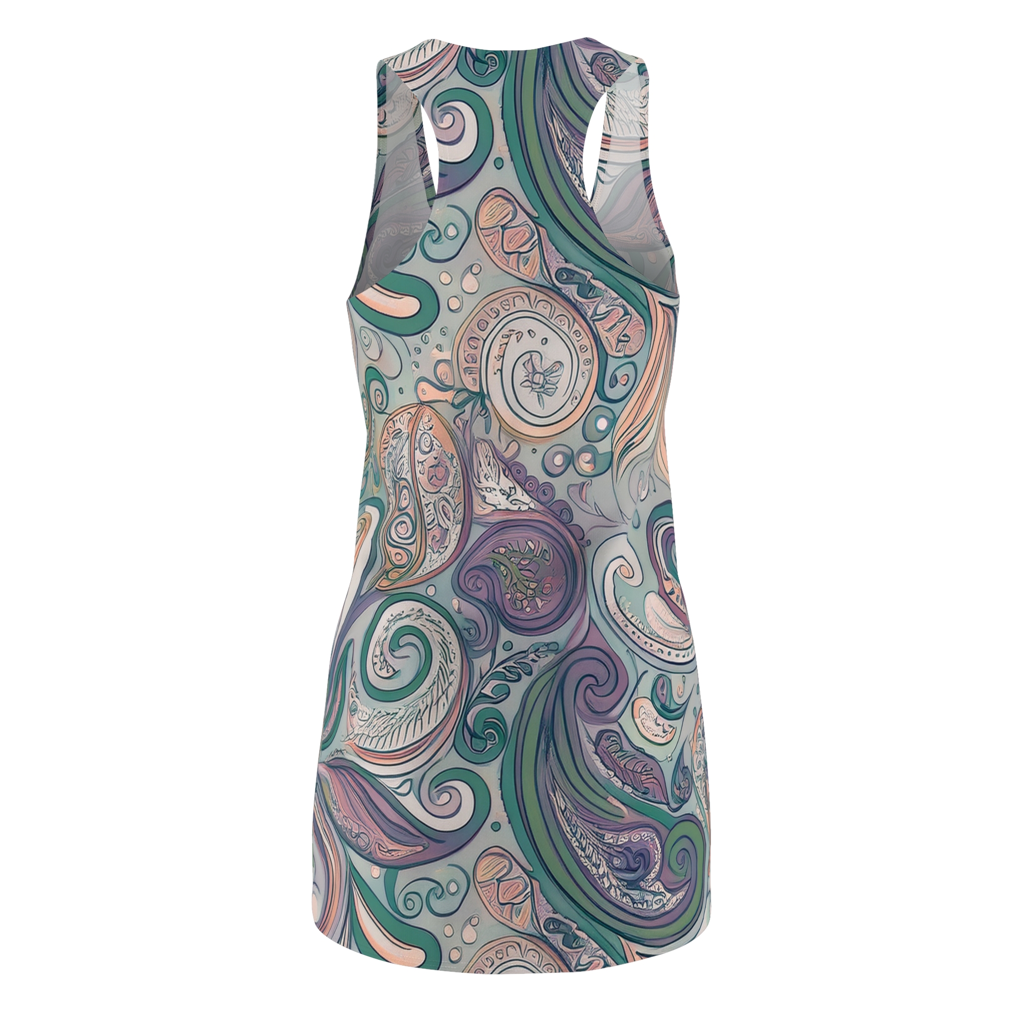 The Daydream Drift Racerback Dress features a delicate swirl of paisleys in muted teals, purples, and soft pinks — like a vintage breeze caught in fabric form. Lightweight and beautifully fluid, this dress is made for weekend wandering, quiet afternoons, or easygoing evenings.