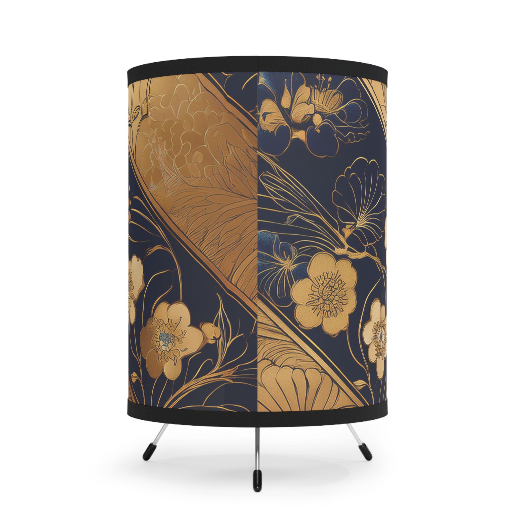 Elevate your home décor with the Golden Elegance Tripod Lamp, a masterful blend of timeless beauty and modern functionality. Featuring an intricate, high-resolution print of delicate golden feathers and floral motifs against a deep navy background, this lamp is designed to captivate and transform any room into a haven of luxury and refinement. Whether you’re looking to add an artistic focal point or a subtle touch of elegance, this lamp delivers unparalleled sophistication.