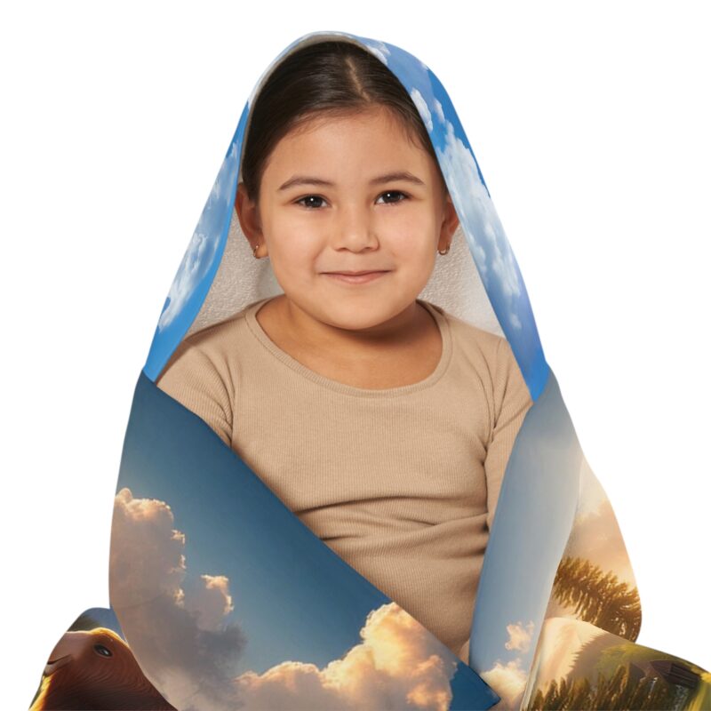 Let your child’s imagination take flight with the “Golden Meadows” Kids’ Towel Hoodie—because drying off has never been this magical.