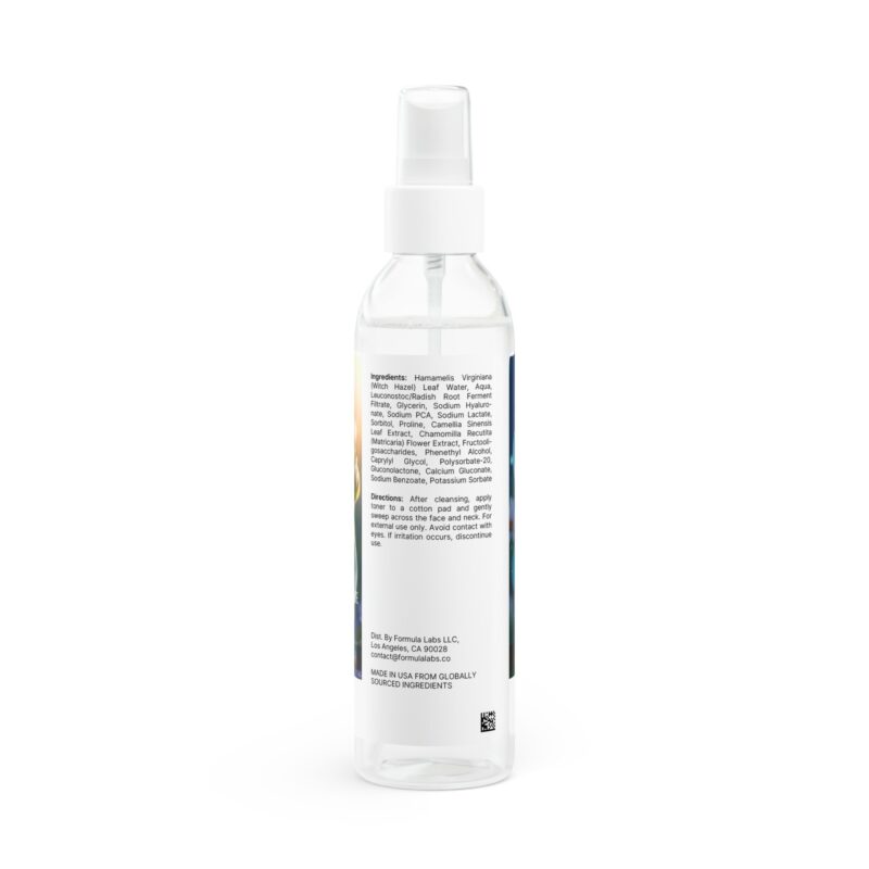 Ingredients: Hamamelis Virginiana (Witch Hazel) Leaf Water, Aqua, Leuconostoc/Radish Root Ferment Filtrate, Glycerin, Sodium Hyaluronate, Sodium PCA, Sodium Lactate, Sorbitol, Proline, Camellia Sinensis Leaf Extract, Chamomilla Recutita (Matricaria) Flower Extract, Fructooligosaccharides, Phenethyl Alcohol, Caprylyl Glycol, Polysorbate-20, Gluconolactone, Calcium Gluconate, Sodium Benzoate, Potassium Sorbate.