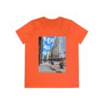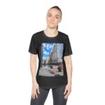 Set against the backdrop of towering buildings, traffic cones, and rising steam, this shirt frames an everyday scene and makes it iconic. It’s the grit and grace of the city distilled into fabric. You don’t just wear this tee — you carry a piece of the sidewalk with you.