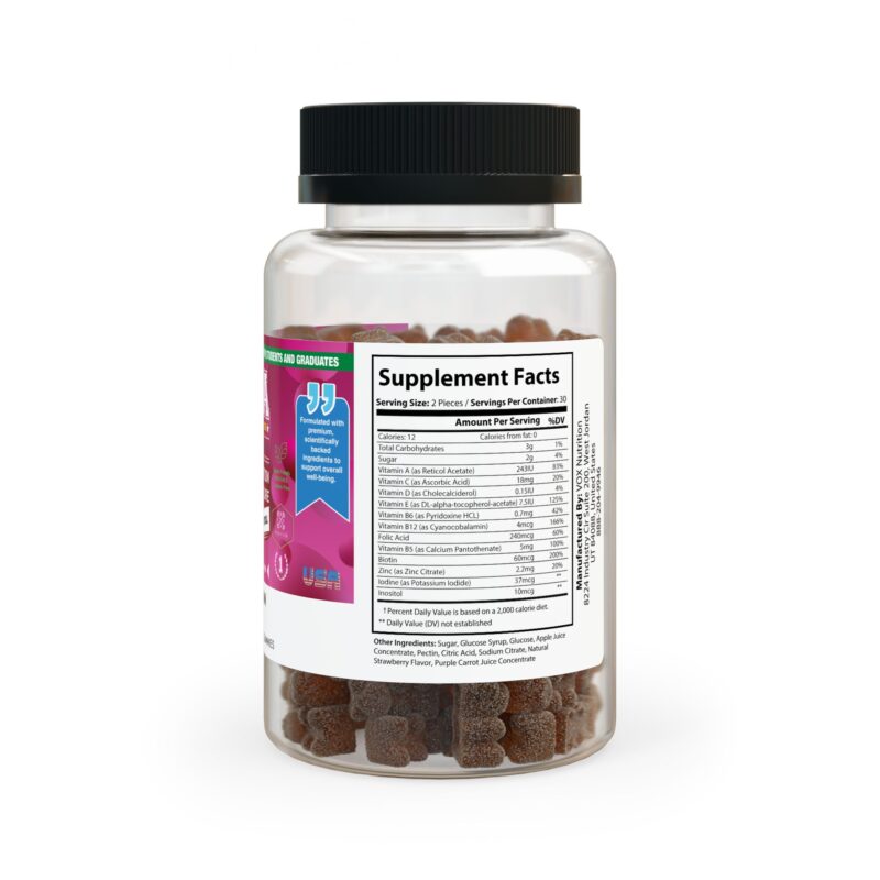 With a blend of vitamins, iodine, and natural ingredients, these gummies help support your daily health – one delicious bite at a time.