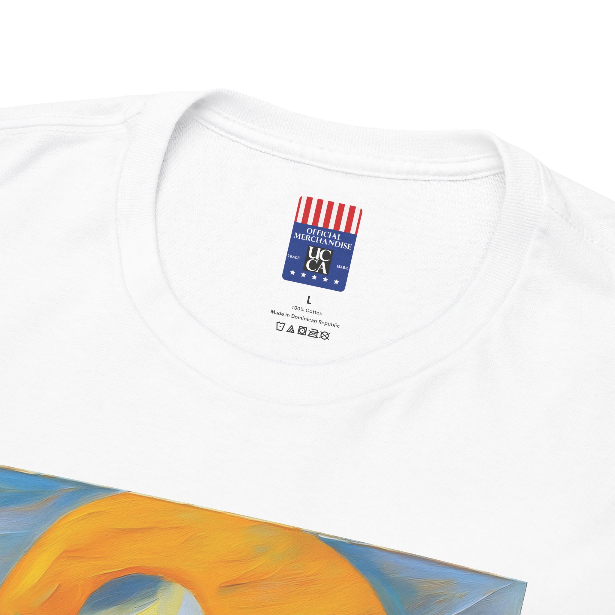 Celebrate bold artistry with the Path to the Horizon Graphic Tee, featuring an eye-catching abstract design that radiates vibrant energy. The graphic showcases a stunning composition of warm golden yellows, rich blues, and deep reds, blending seamlessly into a dynamic landscape of a sunlit path leading to a striking tower. Its painterly style evokes a sense of movement, optimism, and adventure—perfect for expressing individuality and creative flair.