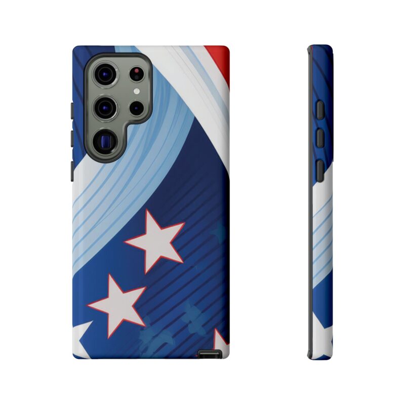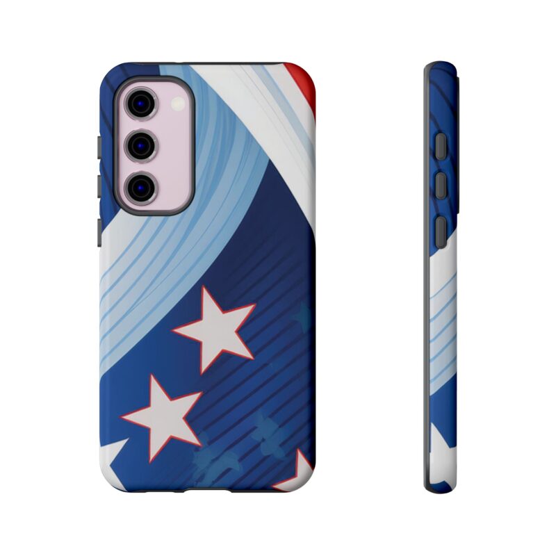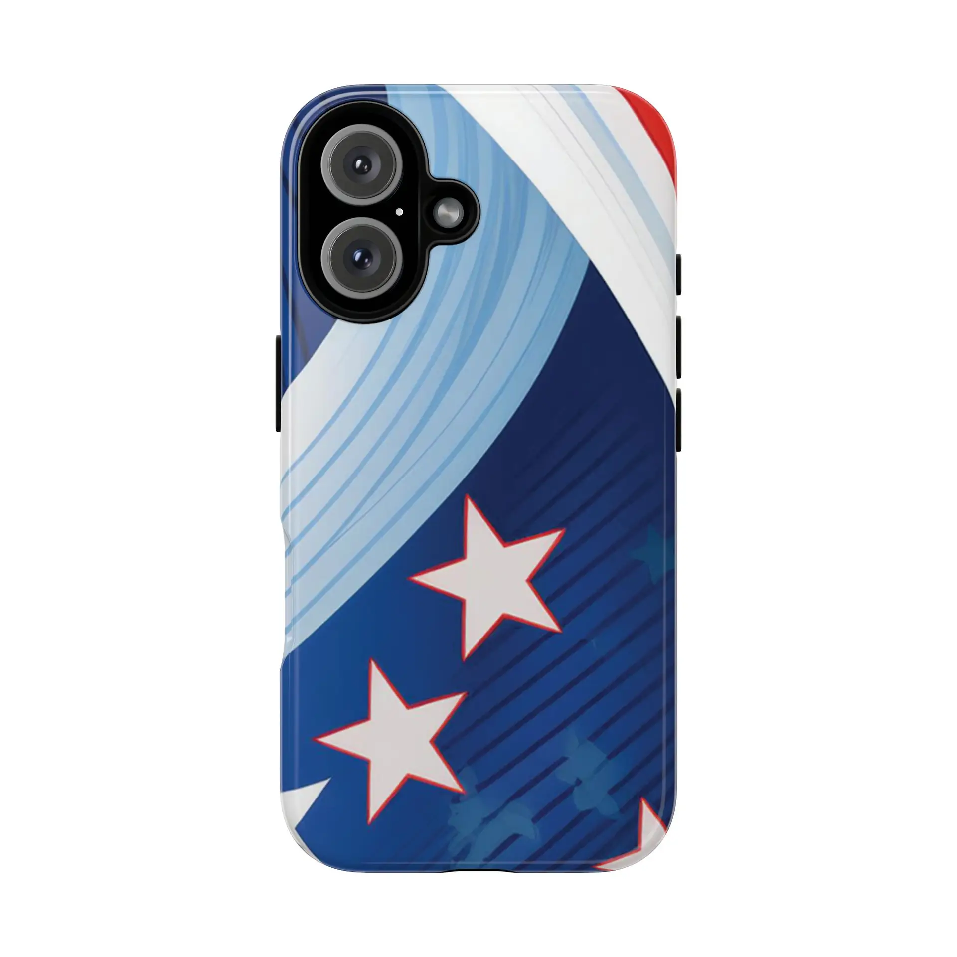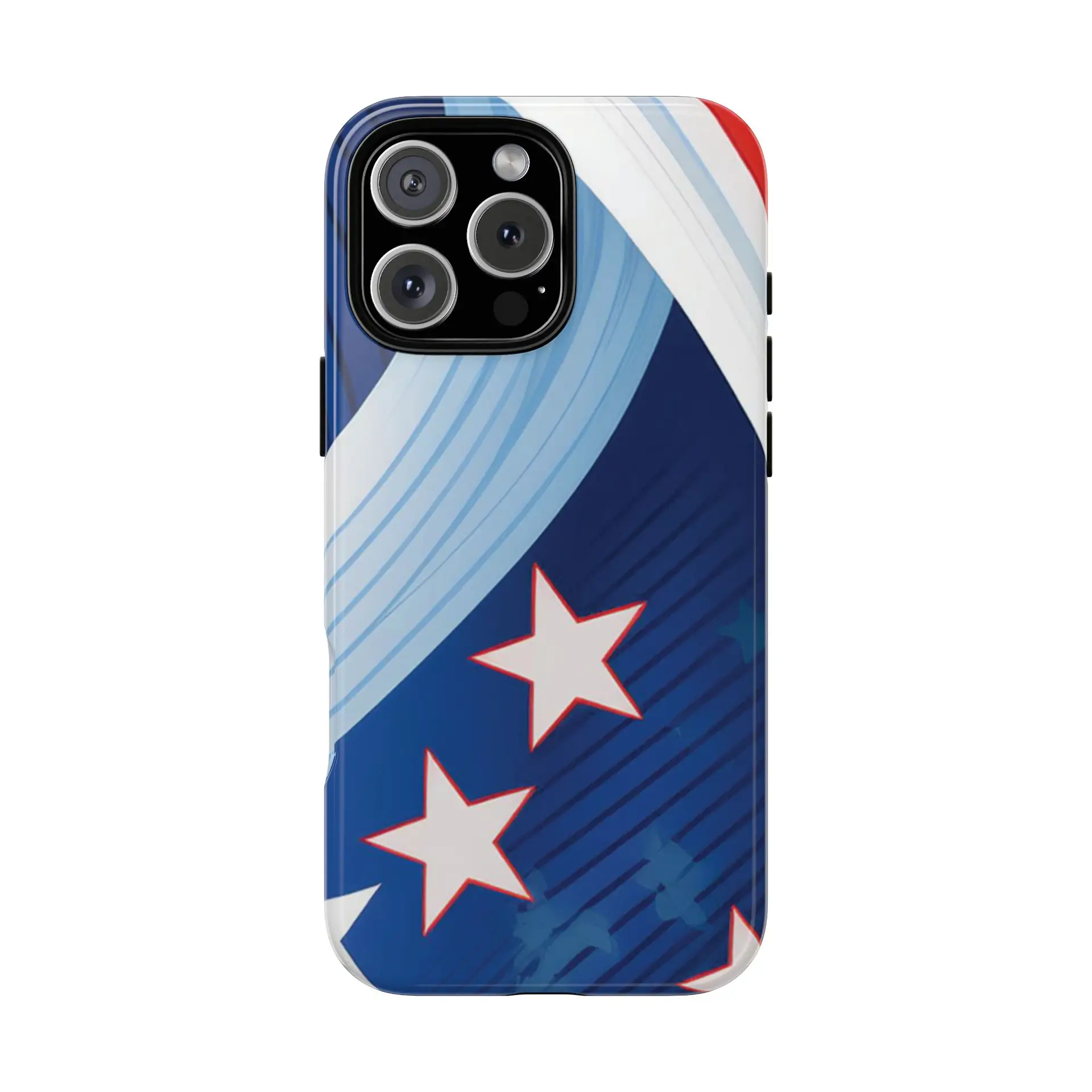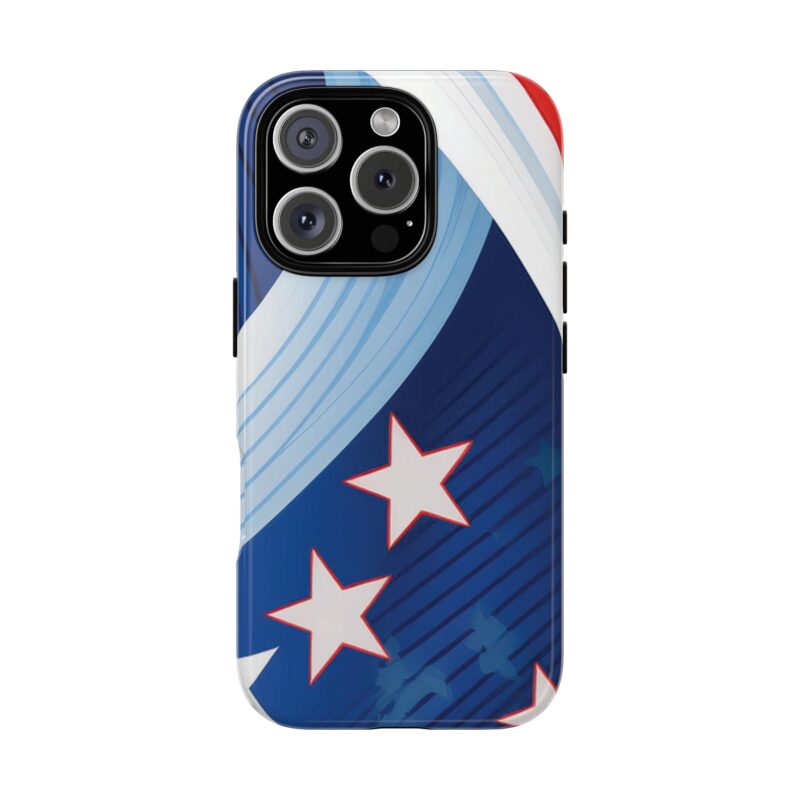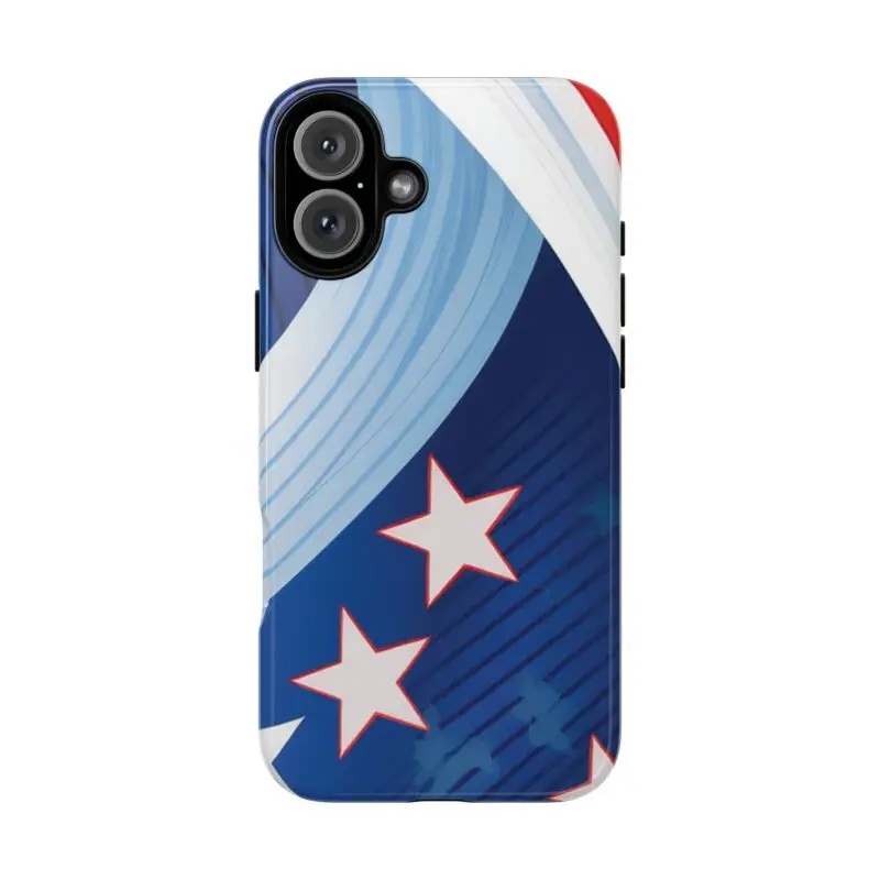 Celebrate bold colors and classic motifs with this phone case featuring a striking red, white, and blue design with prominent stars. Perfect for those who love timeless patriotic themes with a modern twist, this case combines eye-catching aesthetics with durable functionality to keep your phone safe and stylish.