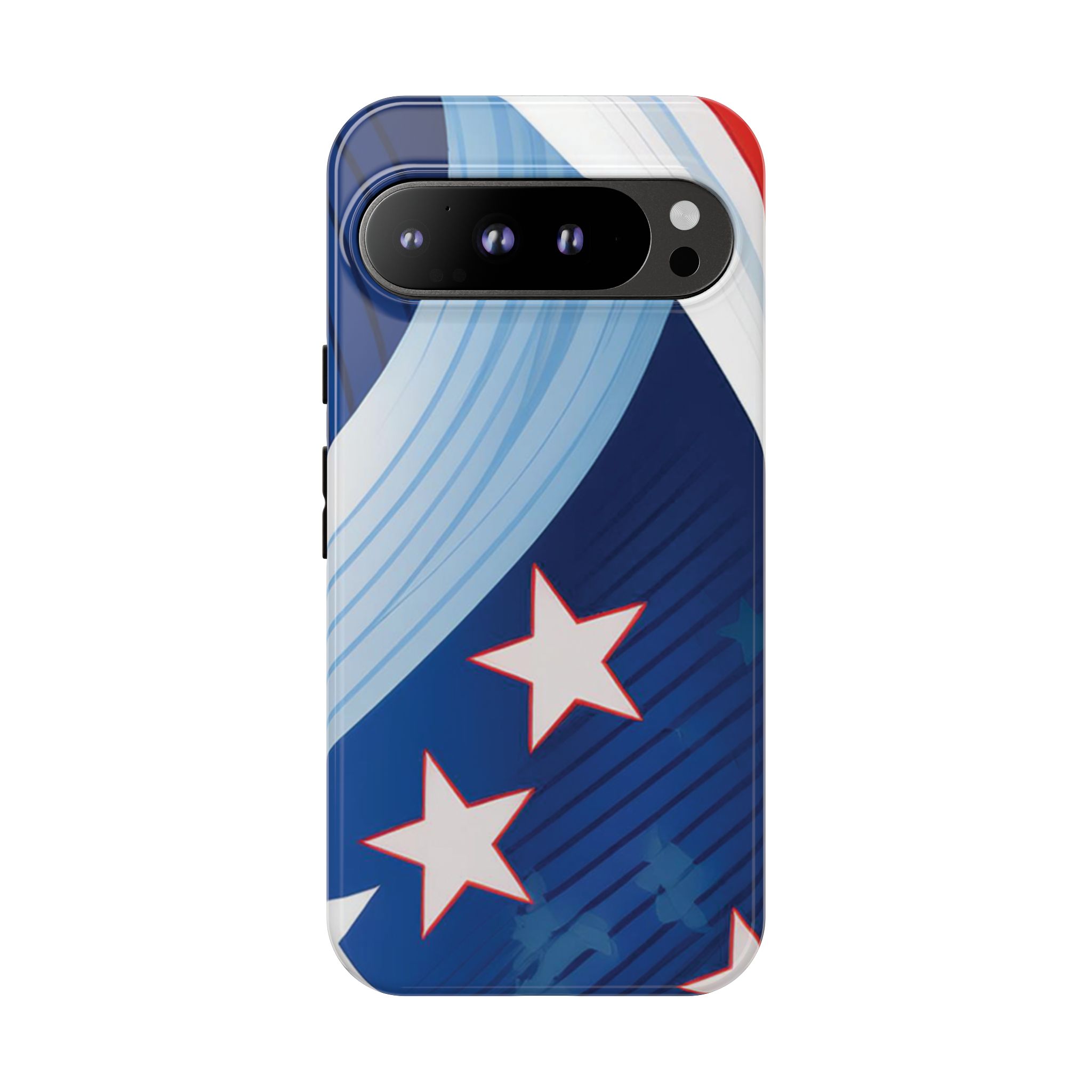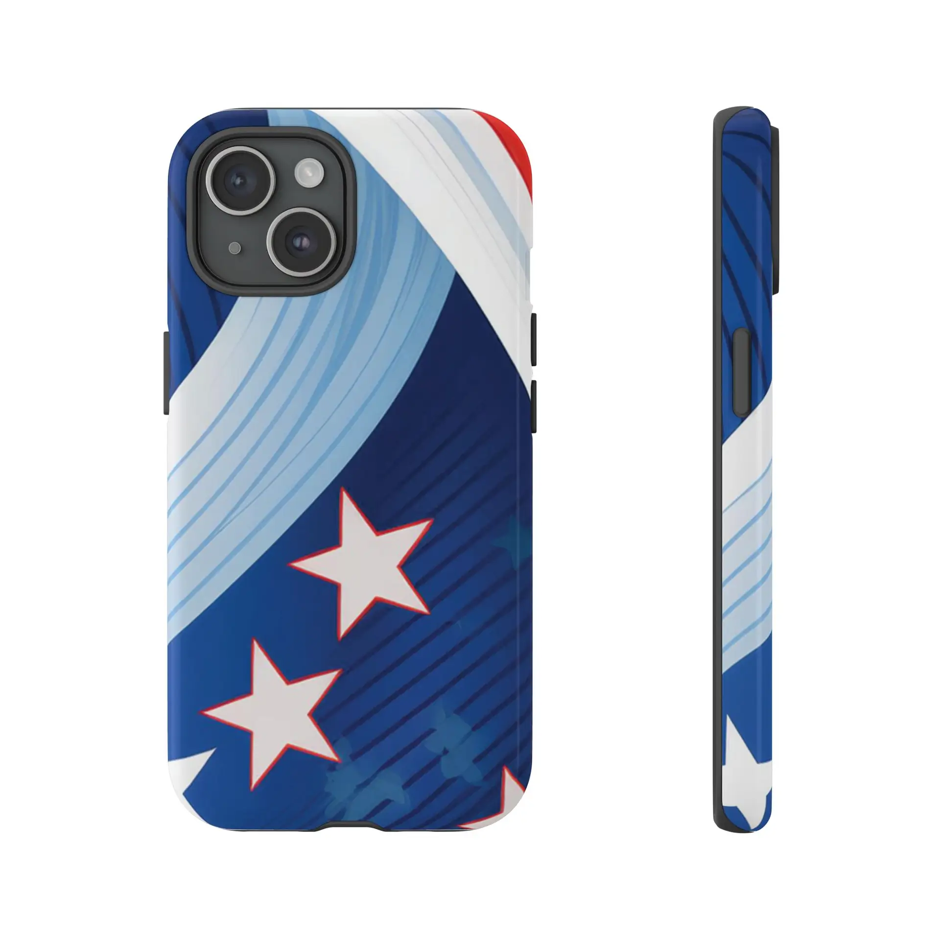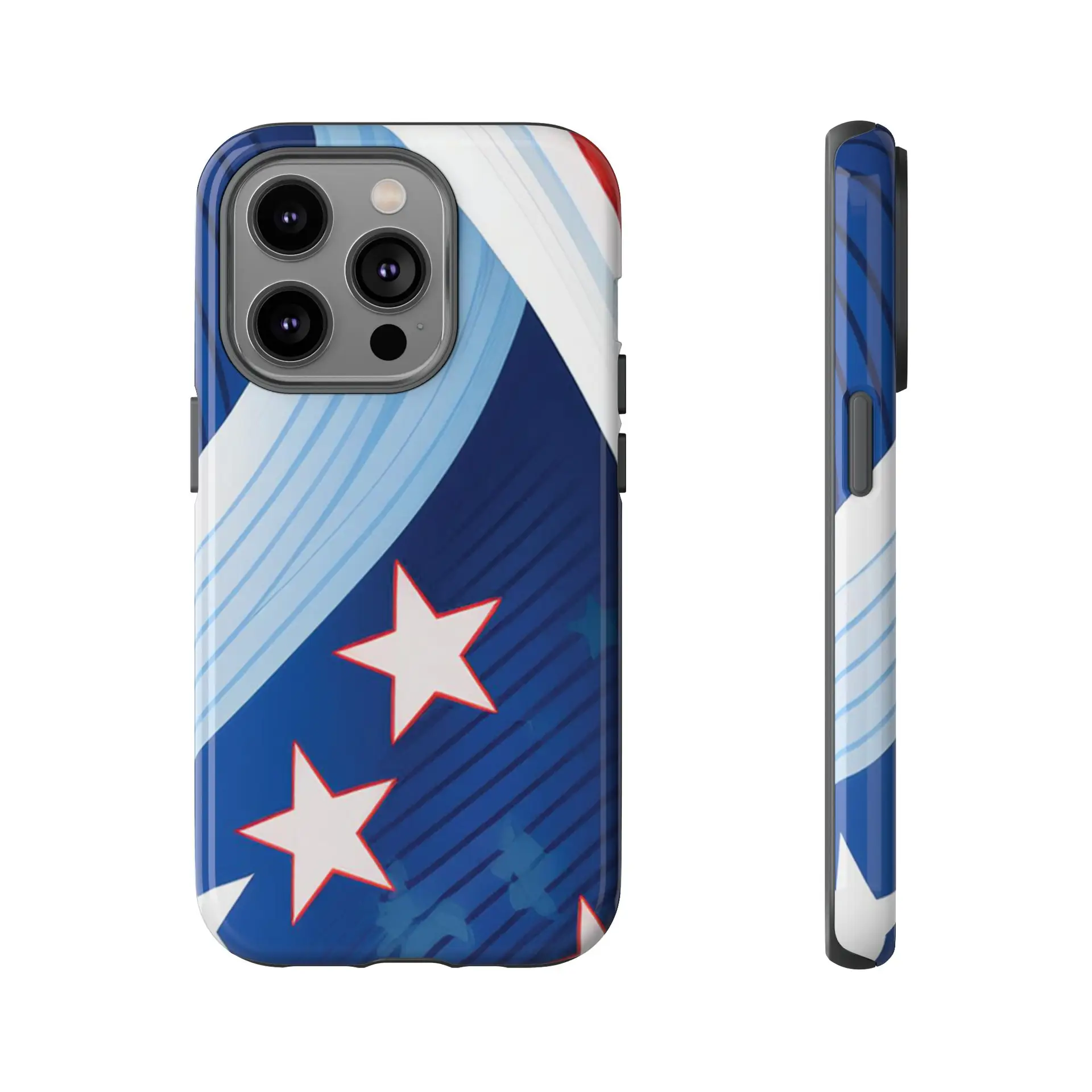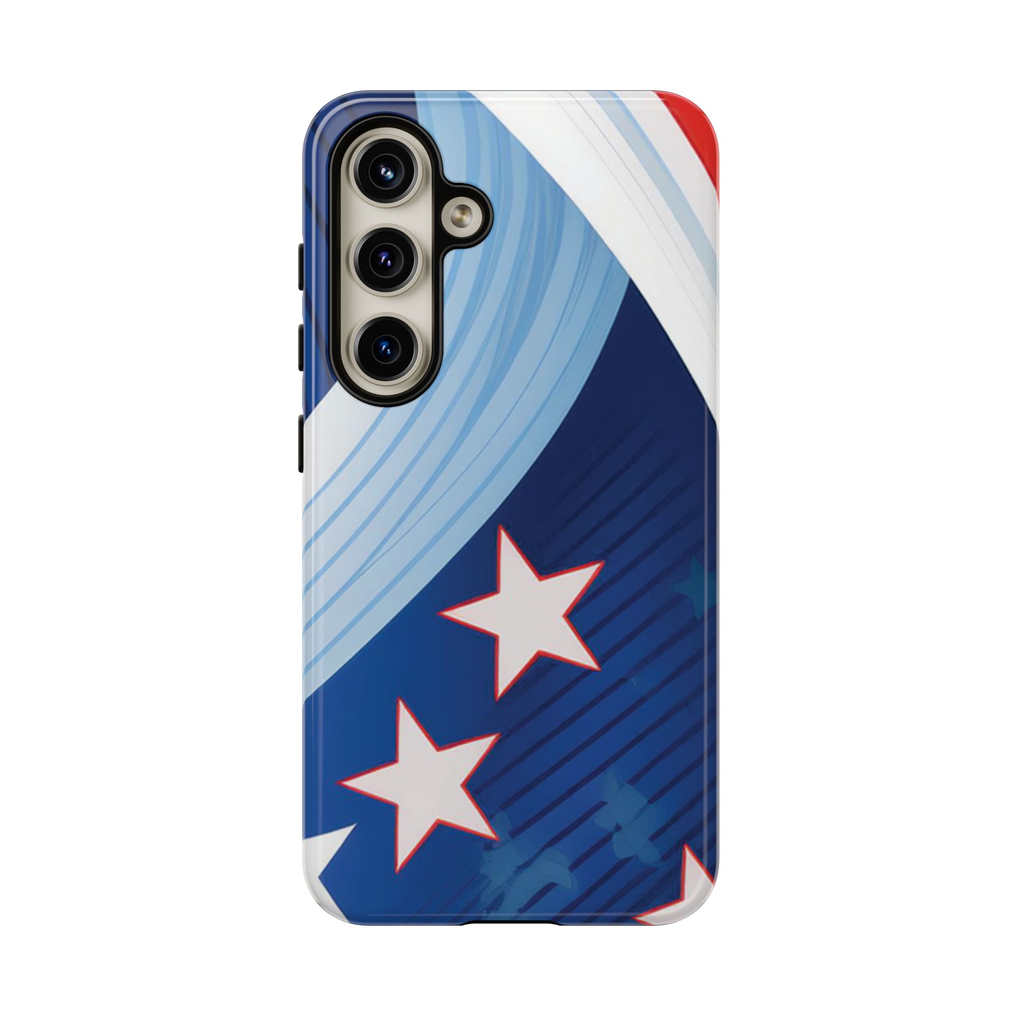 Celebrate bold colors and classic motifs with this phone case featuring a striking red, white, and blue design with prominent stars. Perfect for those who love timeless patriotic themes with a modern twist, this case combines eye-catching aesthetics with durable functionality to keep your phone safe and stylish.