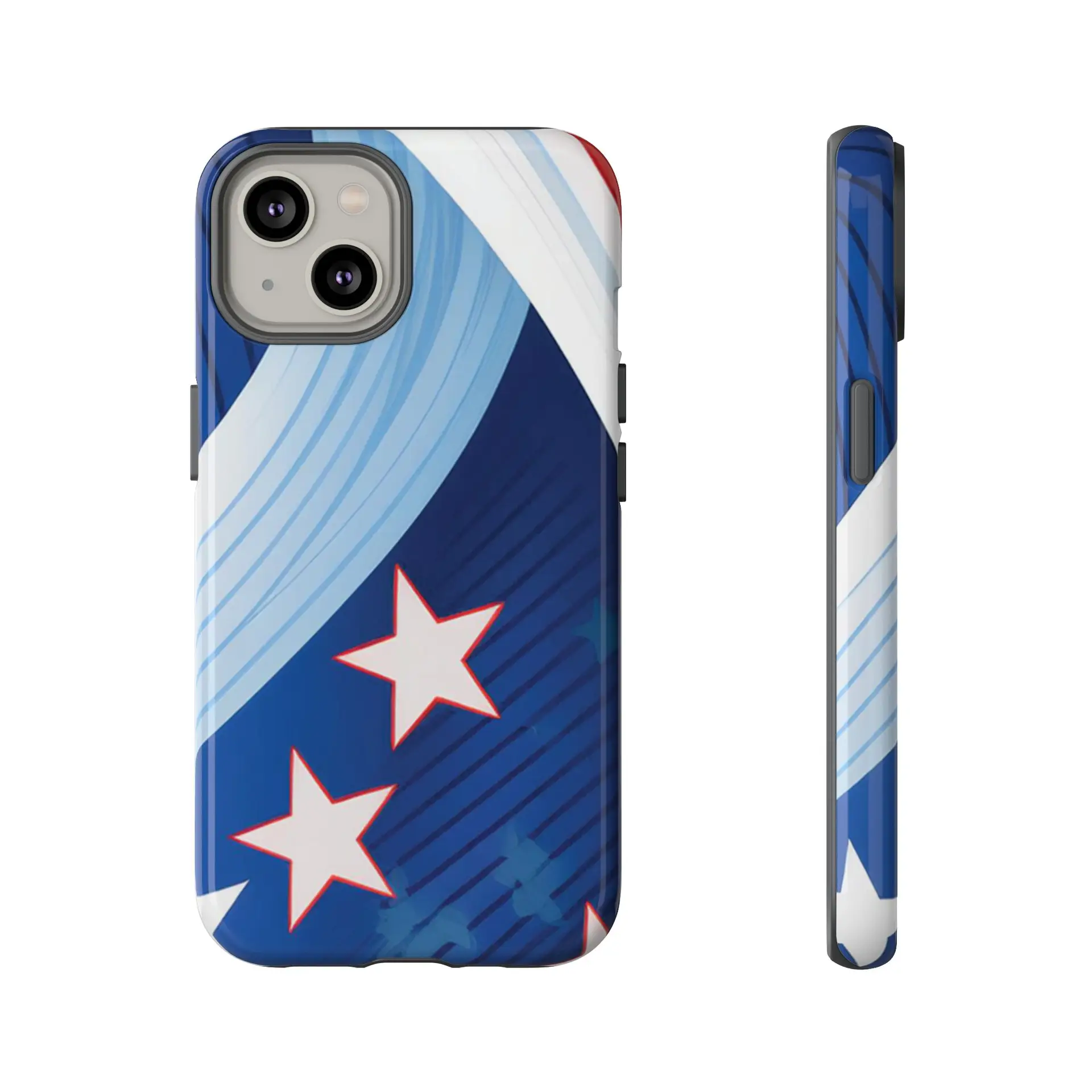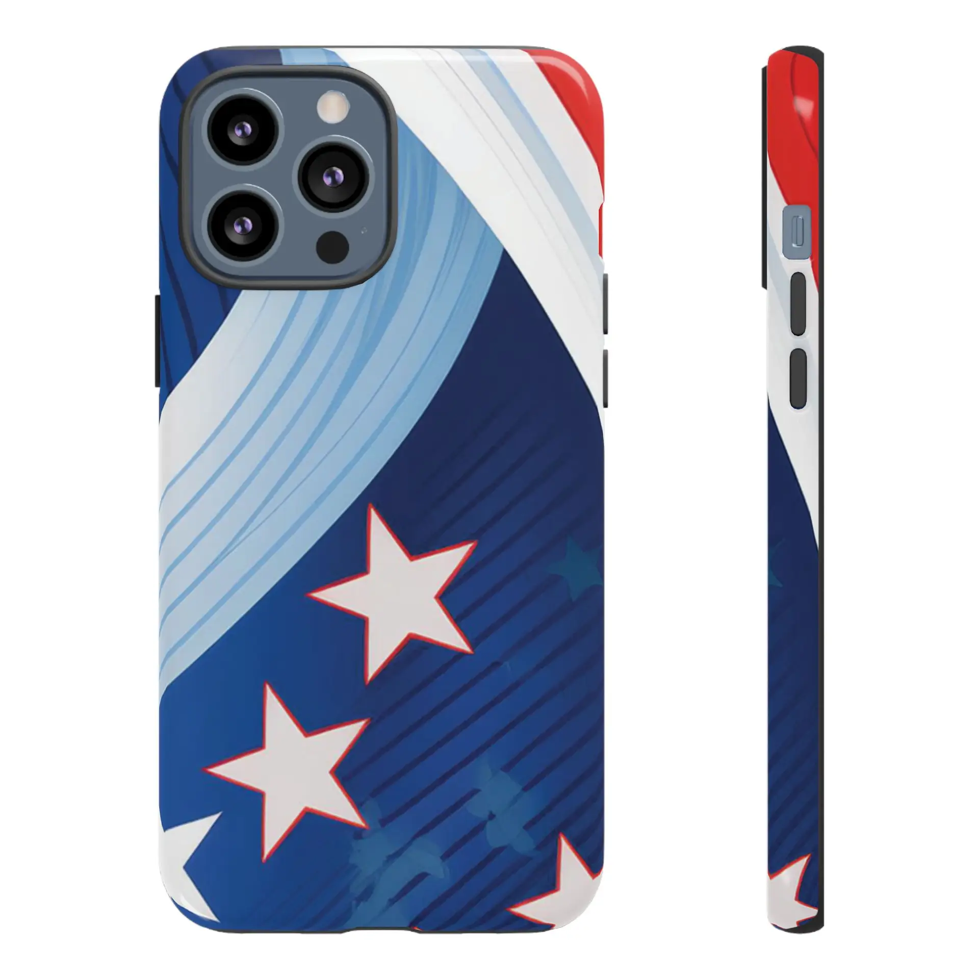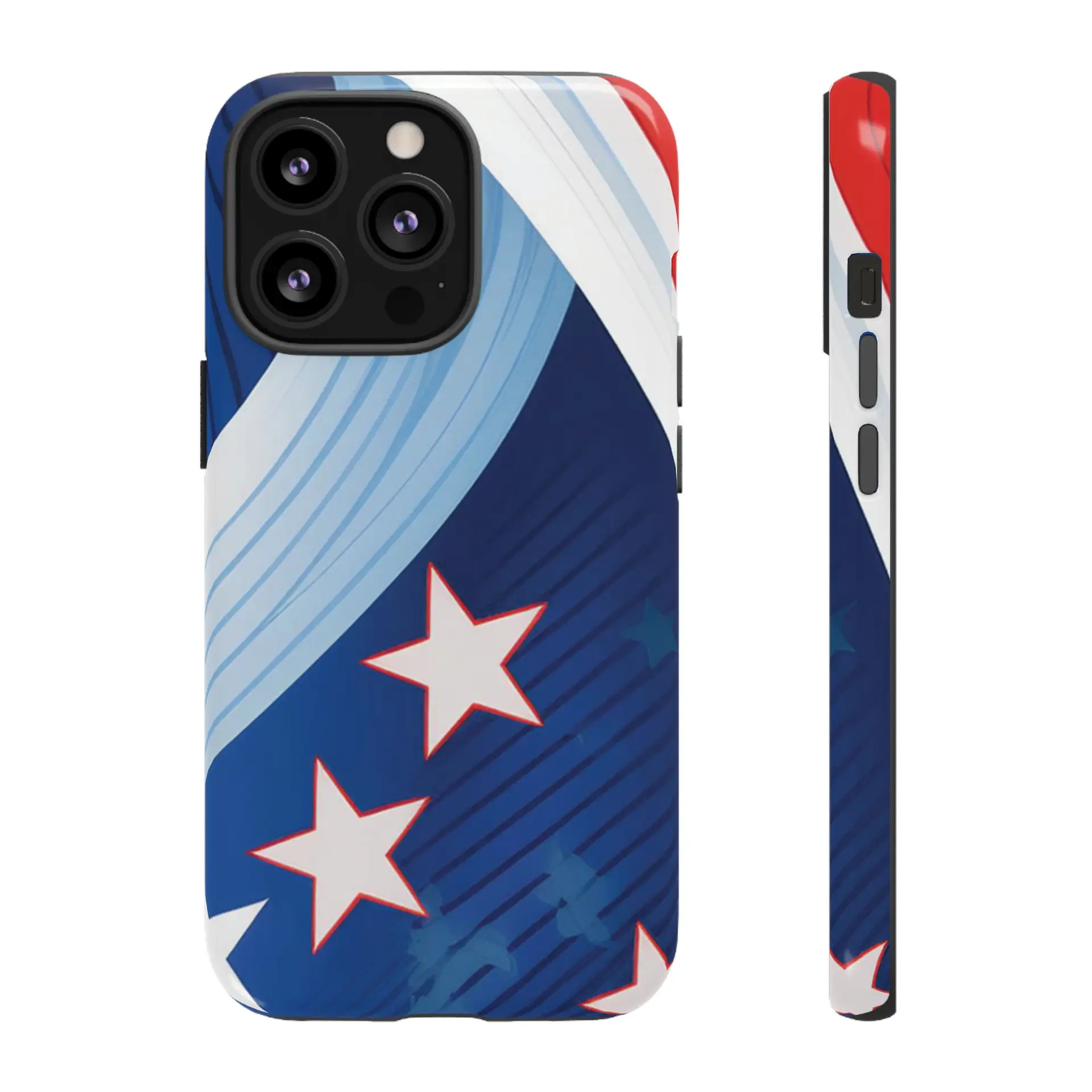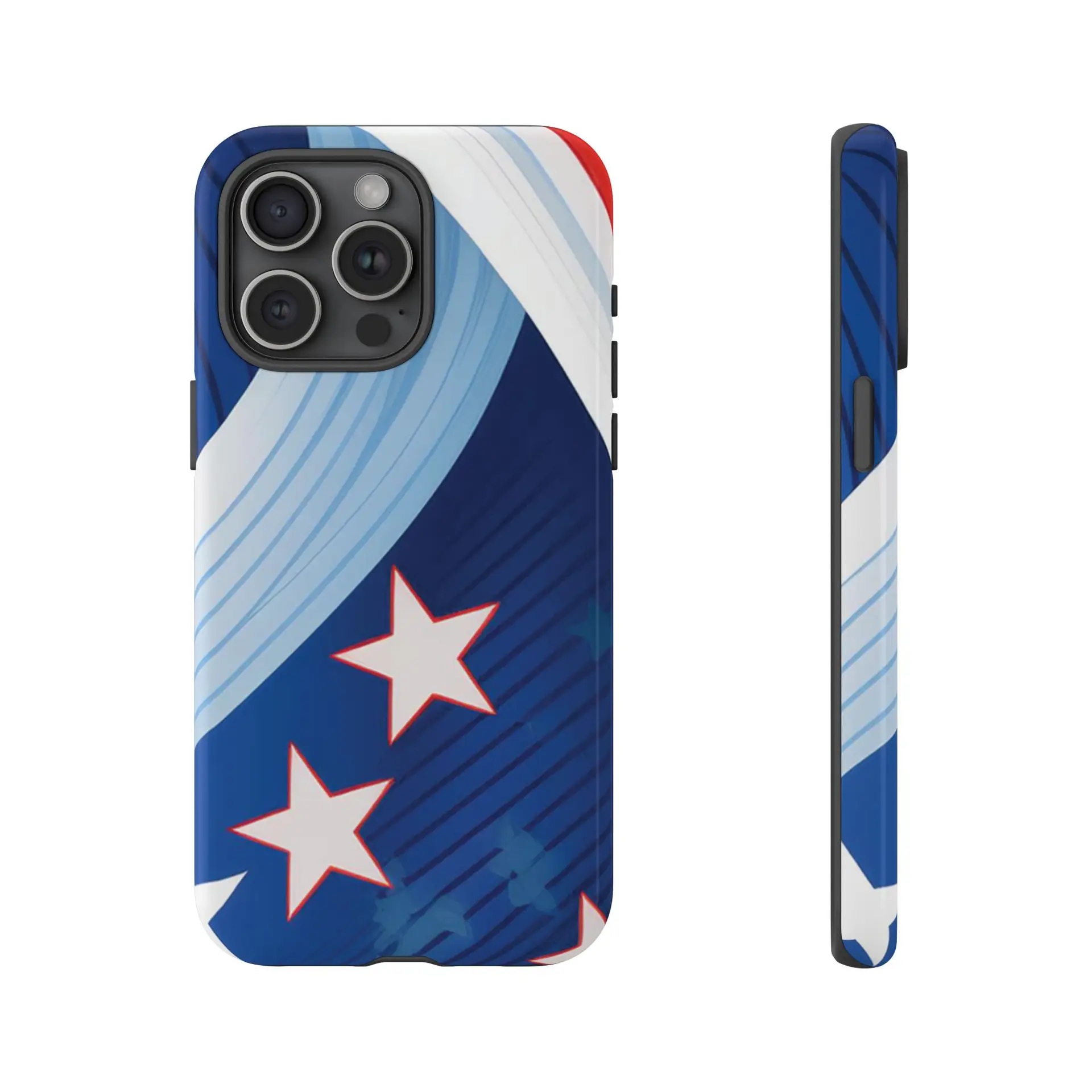 Celebrate bold colors and classic motifs with this phone case featuring a striking red, white, and blue design with prominent stars. Perfect for those who love timeless patriotic themes with a modern twist, this case combines eye-catching aesthetics with durable functionality to keep your phone safe and stylish.