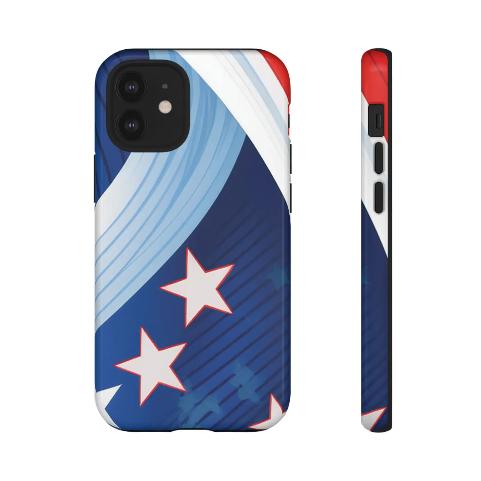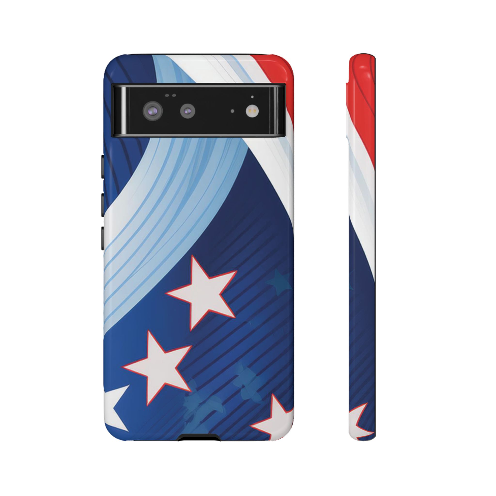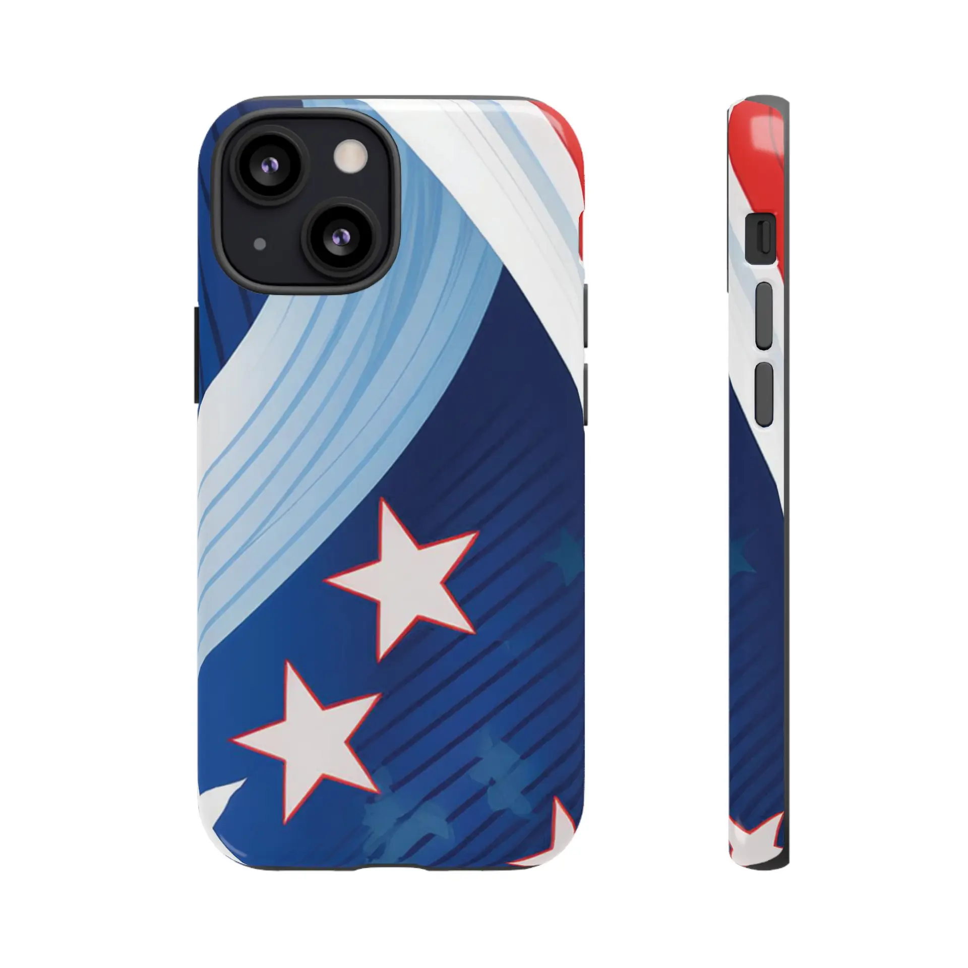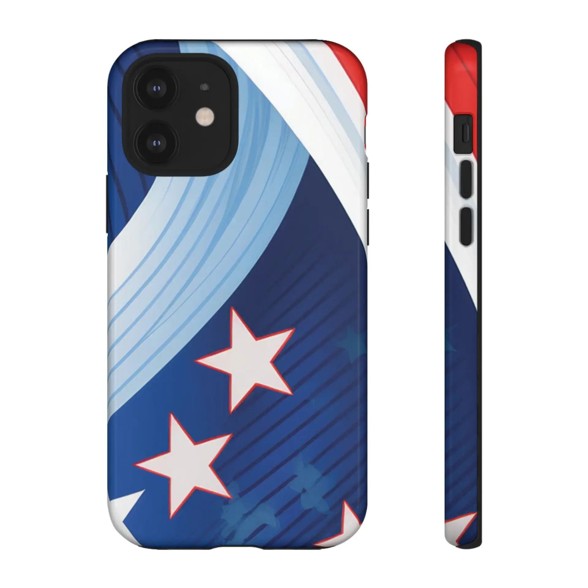 Celebrate bold colors and classic motifs with this phone case featuring a striking red, white, and blue design with prominent stars. Perfect for those who love timeless patriotic themes with a modern twist, this case combines eye-catching aesthetics with durable functionality to keep your phone safe and stylish.