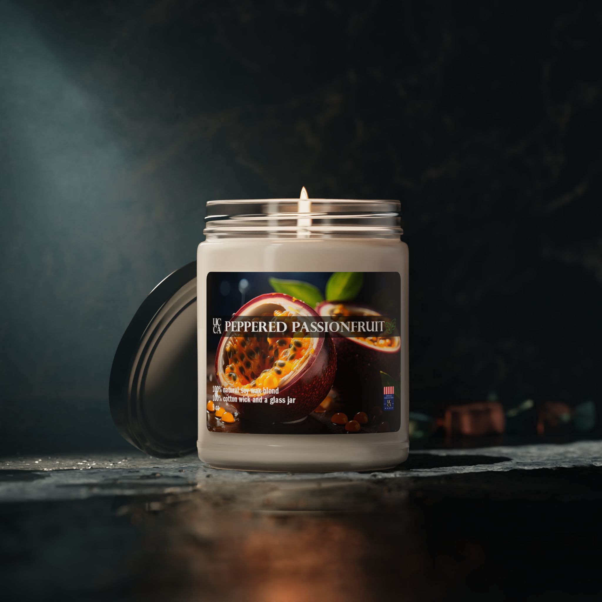 gnite your senses with the bold and exotic aroma of the Peppered Passionfruit Scented Candle. This unique fragrance blends the juicy sweetness of ripe passionfruit with a subtle kick of freshly cracked pepper, creating a dynamic and invigorating scent experience. Perfect for adding an air of sophistication and energy to any space, it’s a candle that dares to stand out.
