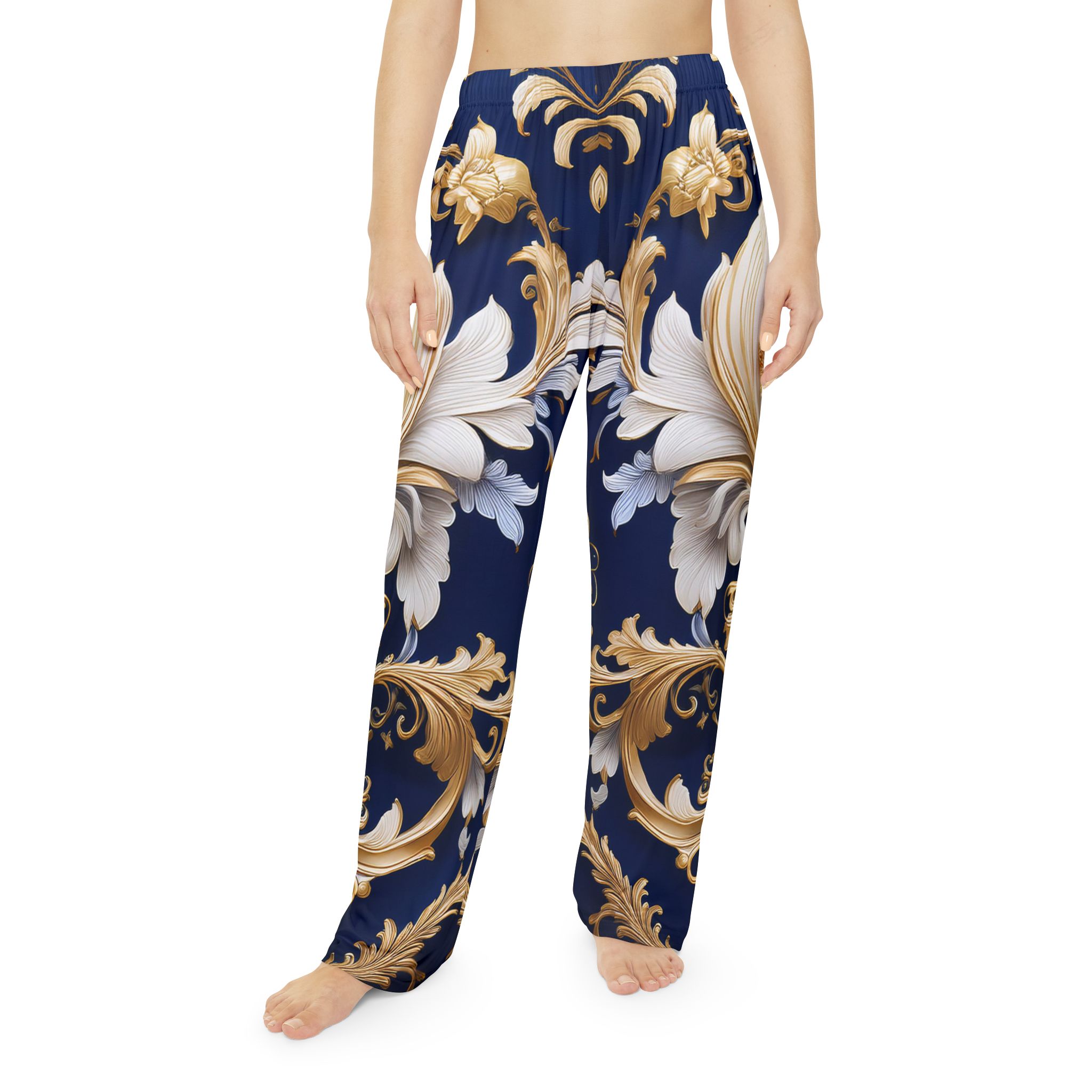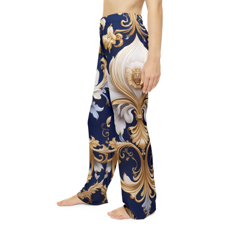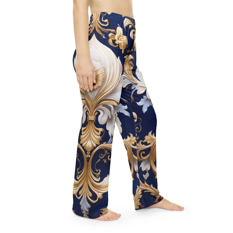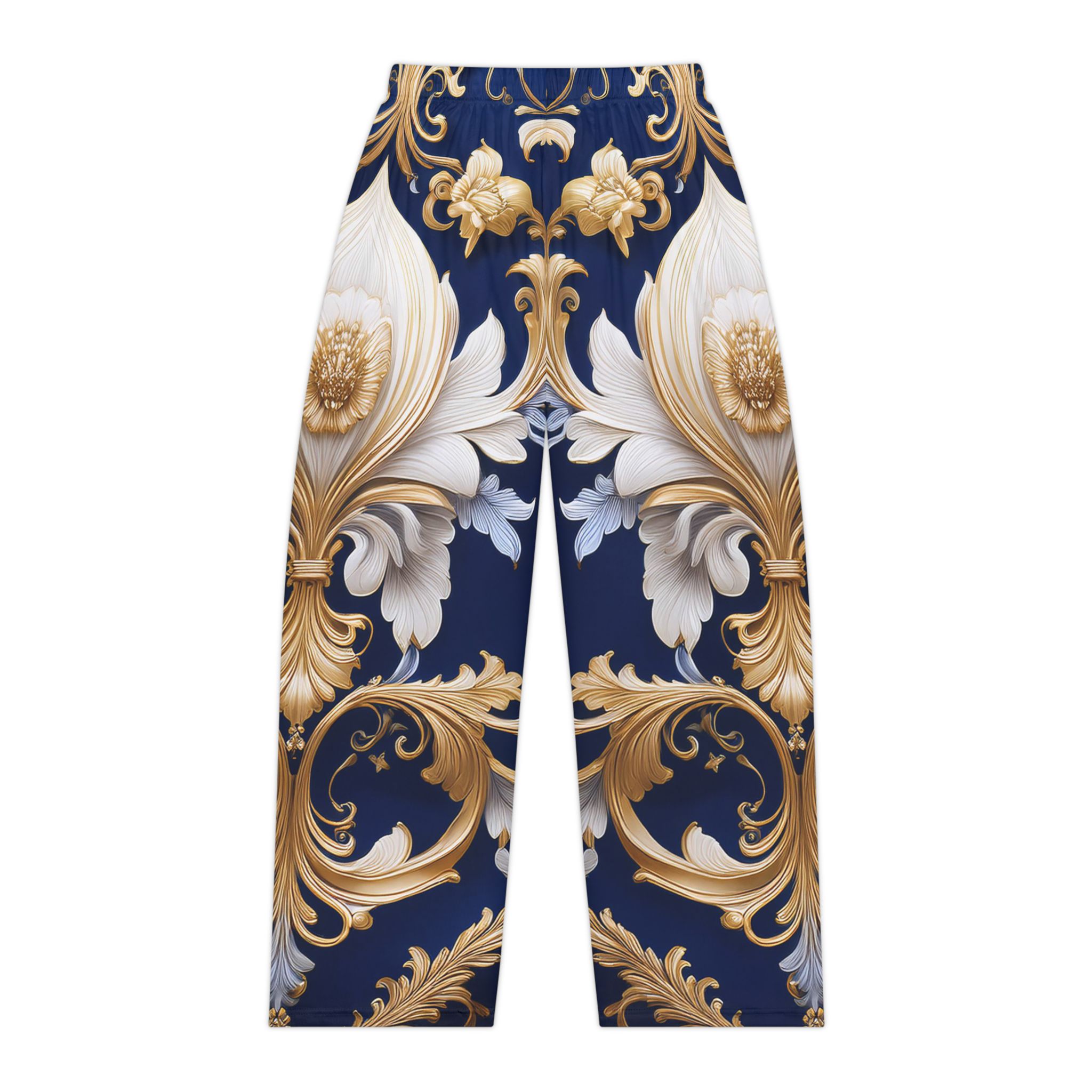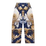 Slip into timeless sophistication with these Regal Elegance Pajama Pants, featuring an opulent baroque-inspired print that blends classic luxury with modern comfort. Designed for those who appreciate refined beauty, this deep navy and gold filigree pattern creates a sense of grandeur while remaining effortlessly wearable.