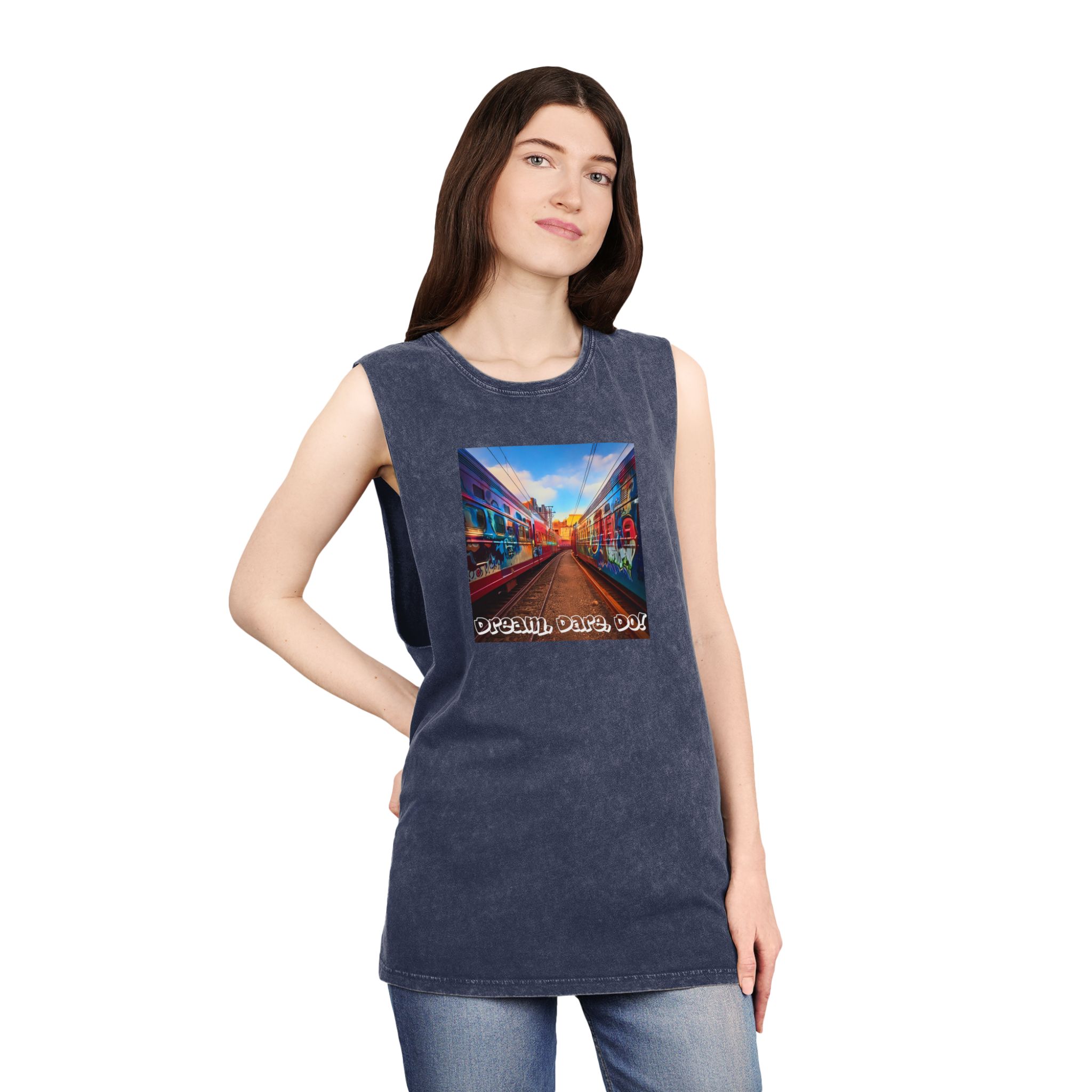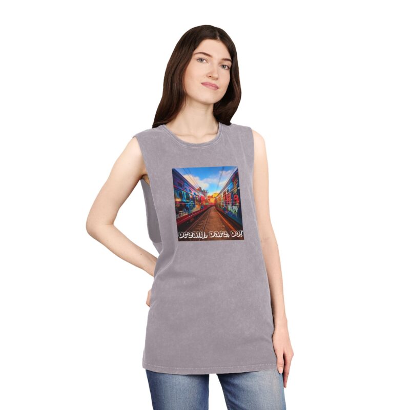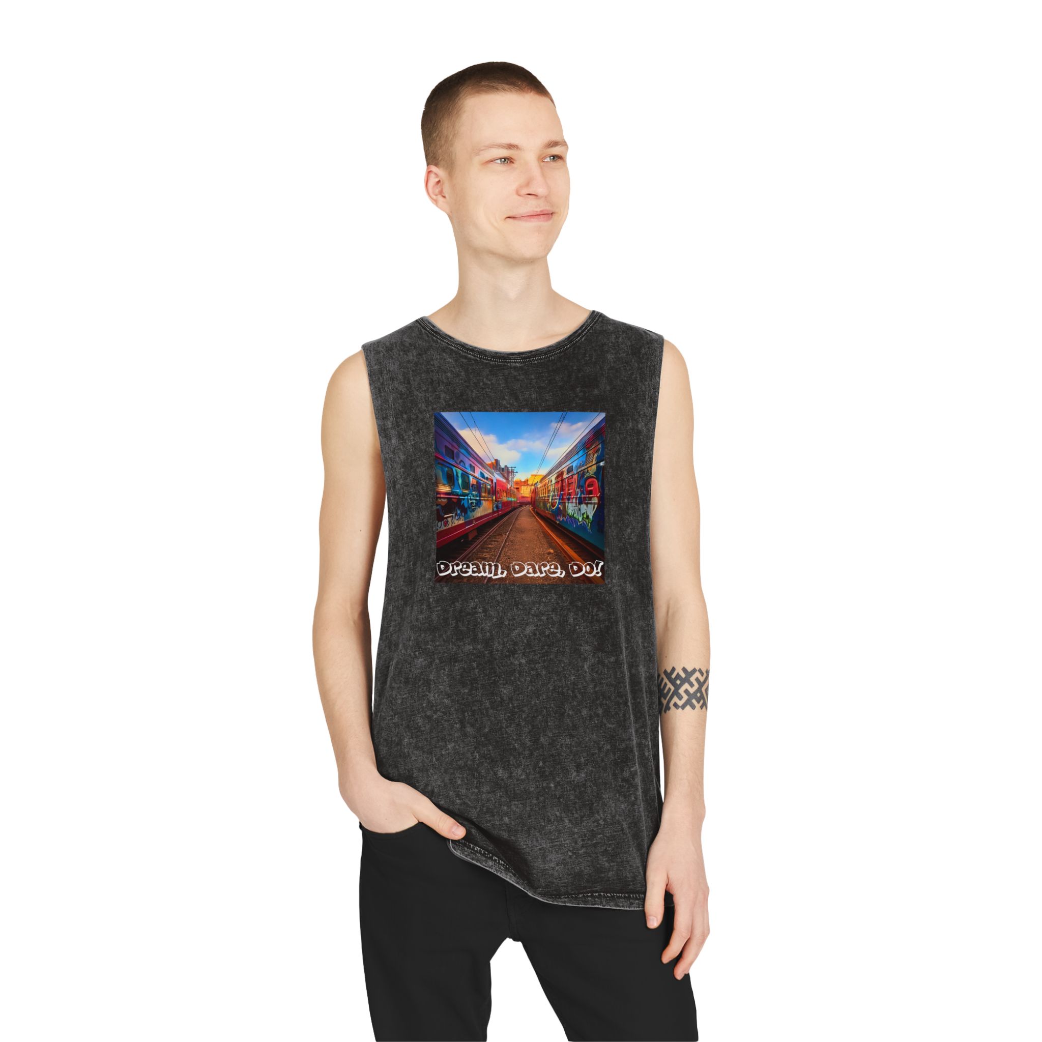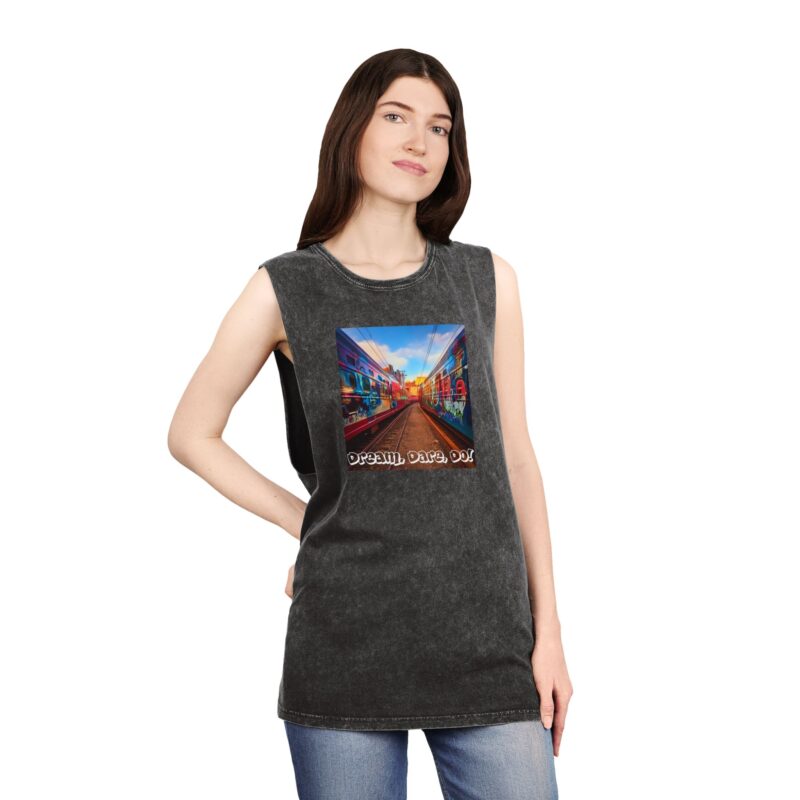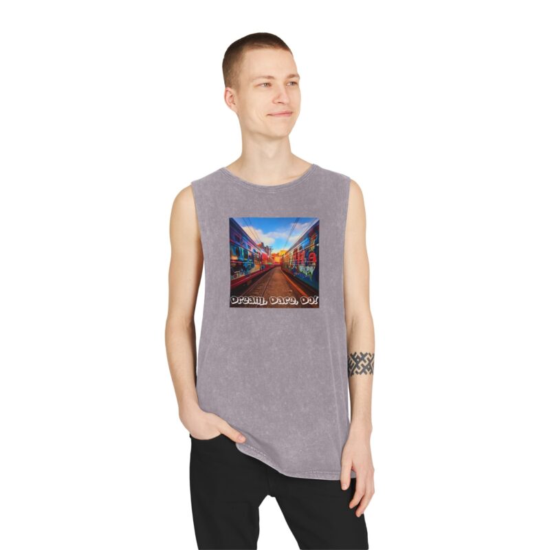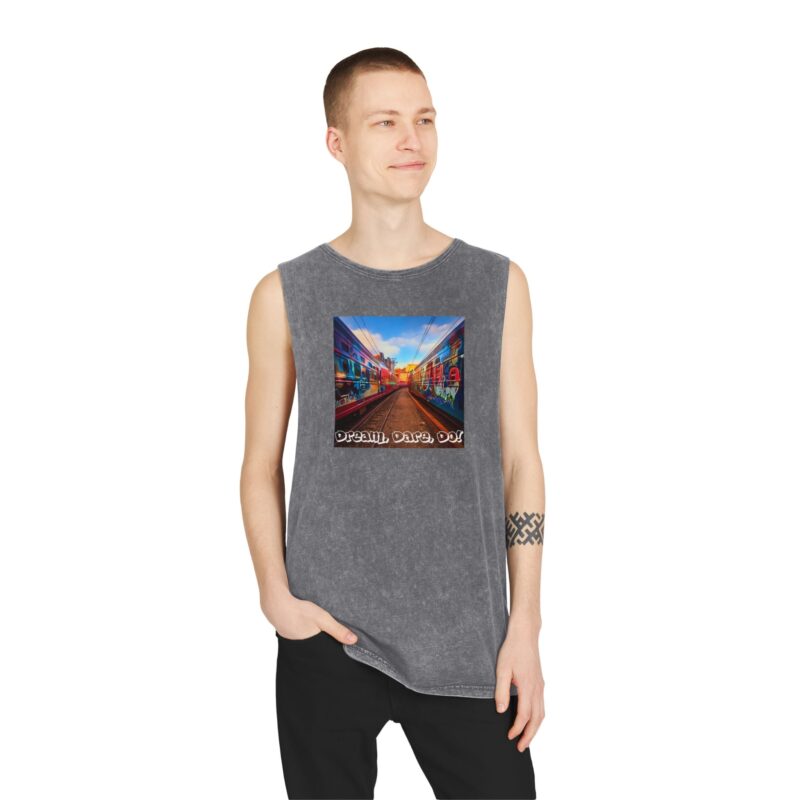 Channel the energy of 1990s street art culture with the Graf Range Sleeveless Tank Tops, a bold throwback to the era when graffiti wasn’t just art—it was a movement. Infused with the spirit of self-expression and fearless creativity, these tanks feature raw armhole edges and a distinctive stonewash finish, creating a look that’s both vintage-inspired and undeniably modern. Tied to the legacy of UCCA, they’re designed to empower you to “Dream, Dare, Do!”—a mantra for those ready to leave their mark on the world.