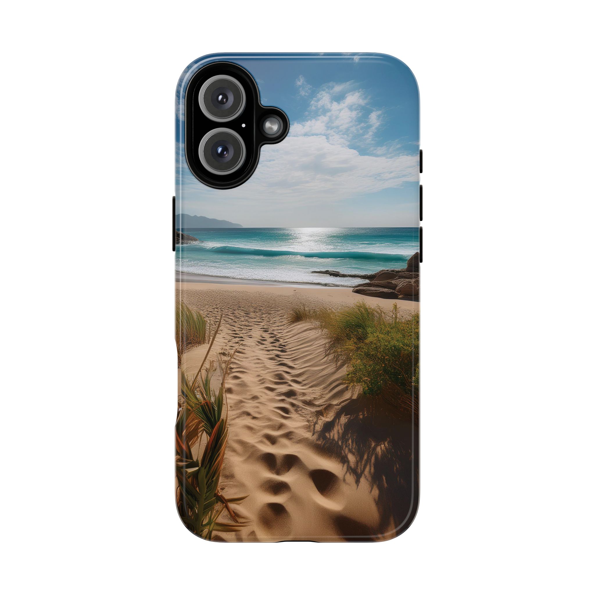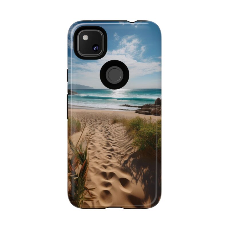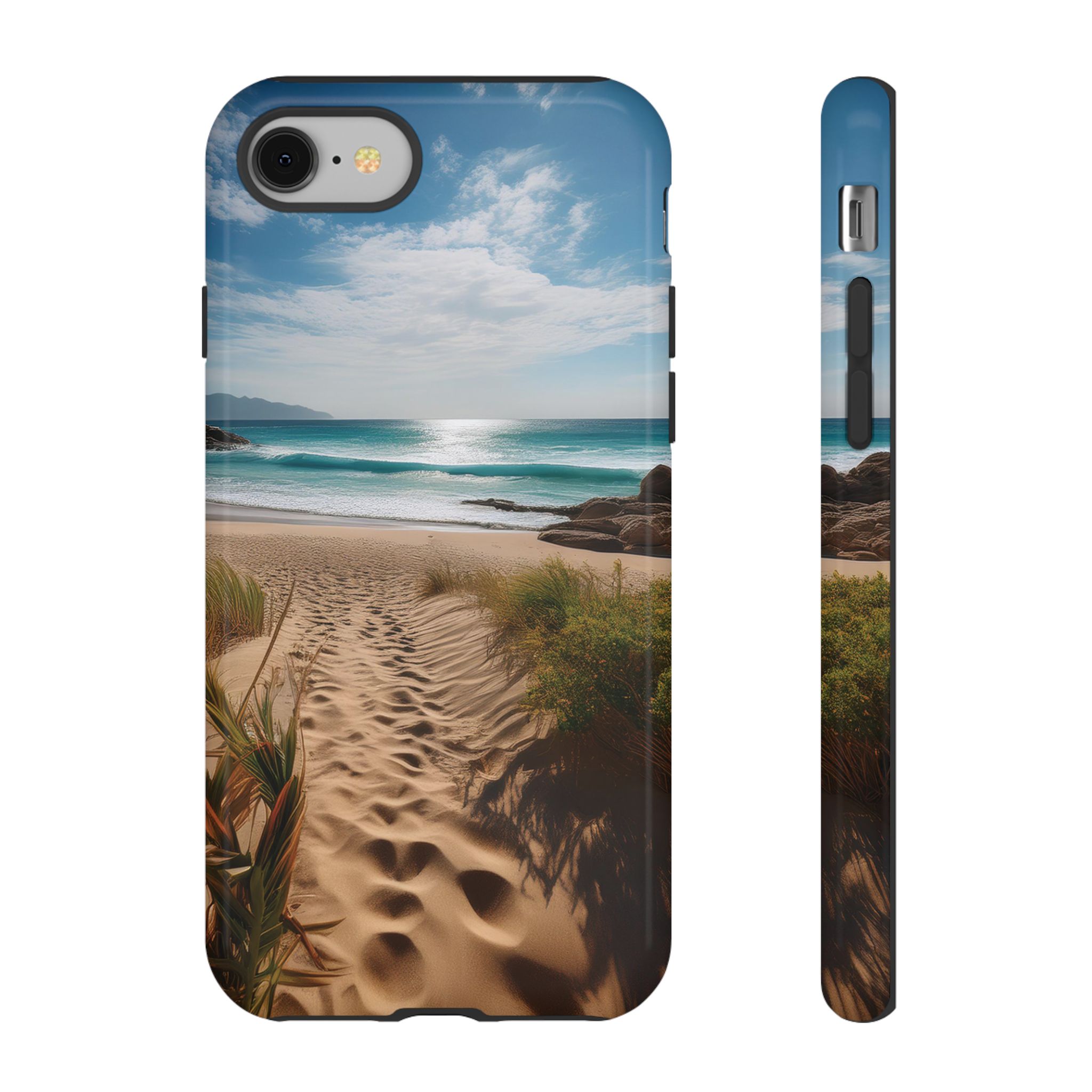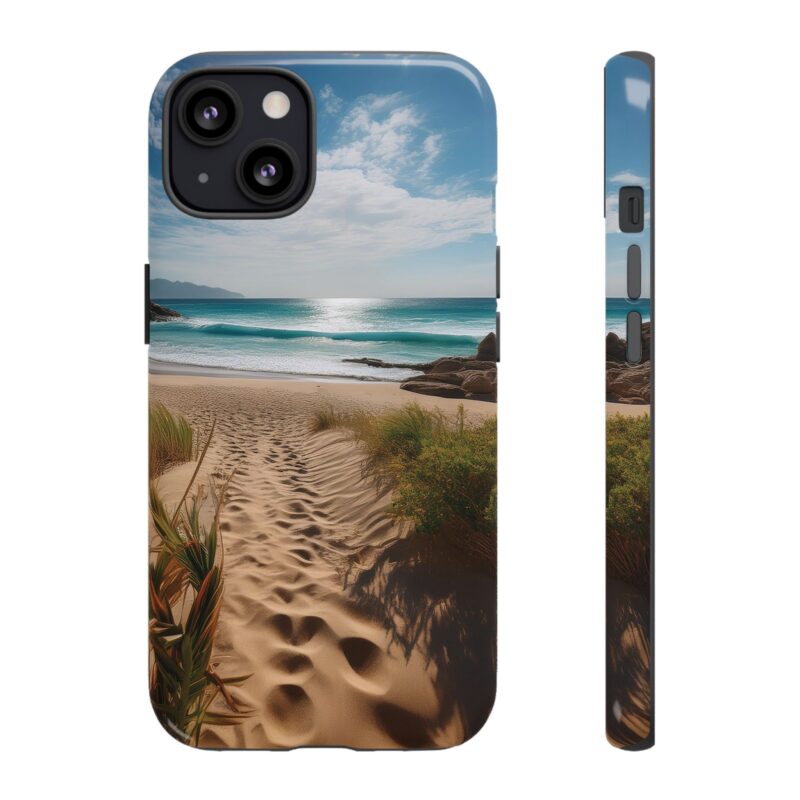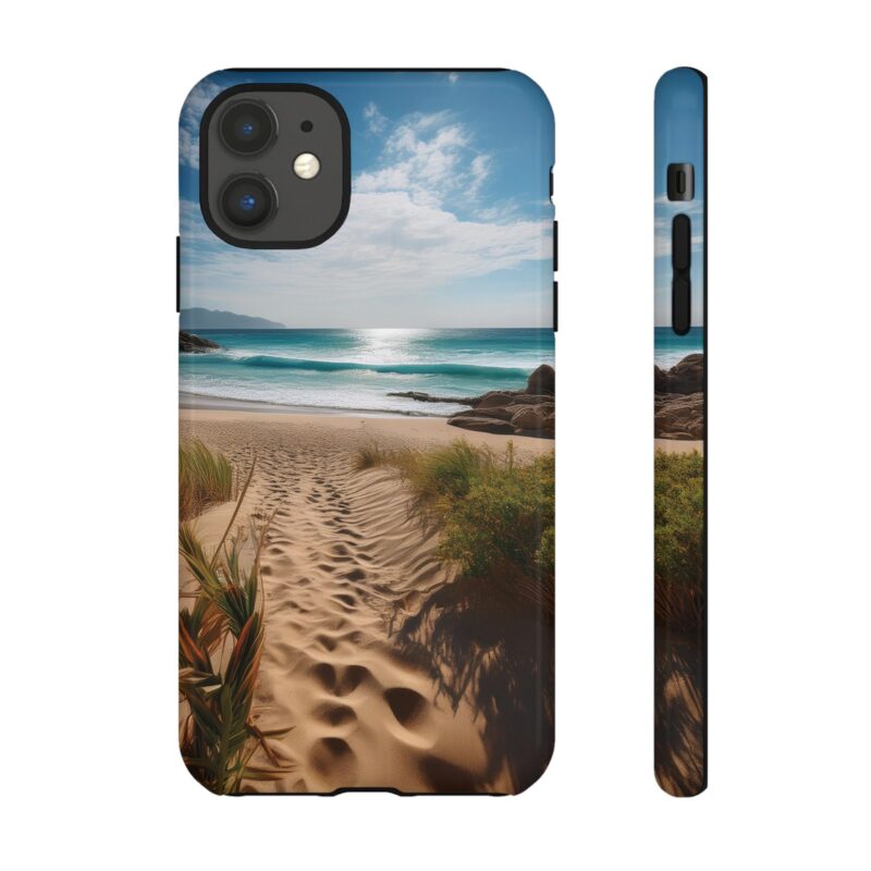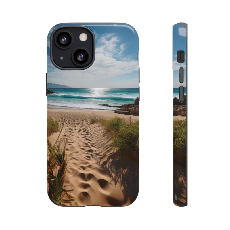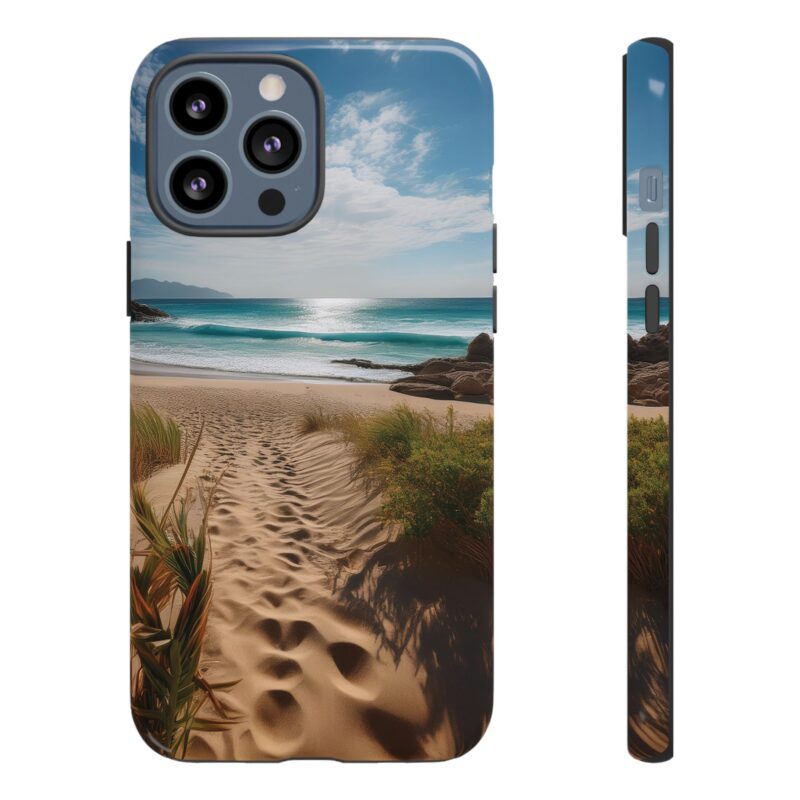 Carry a piece of paradise with you wherever you go with this stunning phone case. Featuring a serene beach path leading to crystal-clear waves and a tranquil horizon, this design is perfect for anyone seeking a daily dose of calm and inspiration.