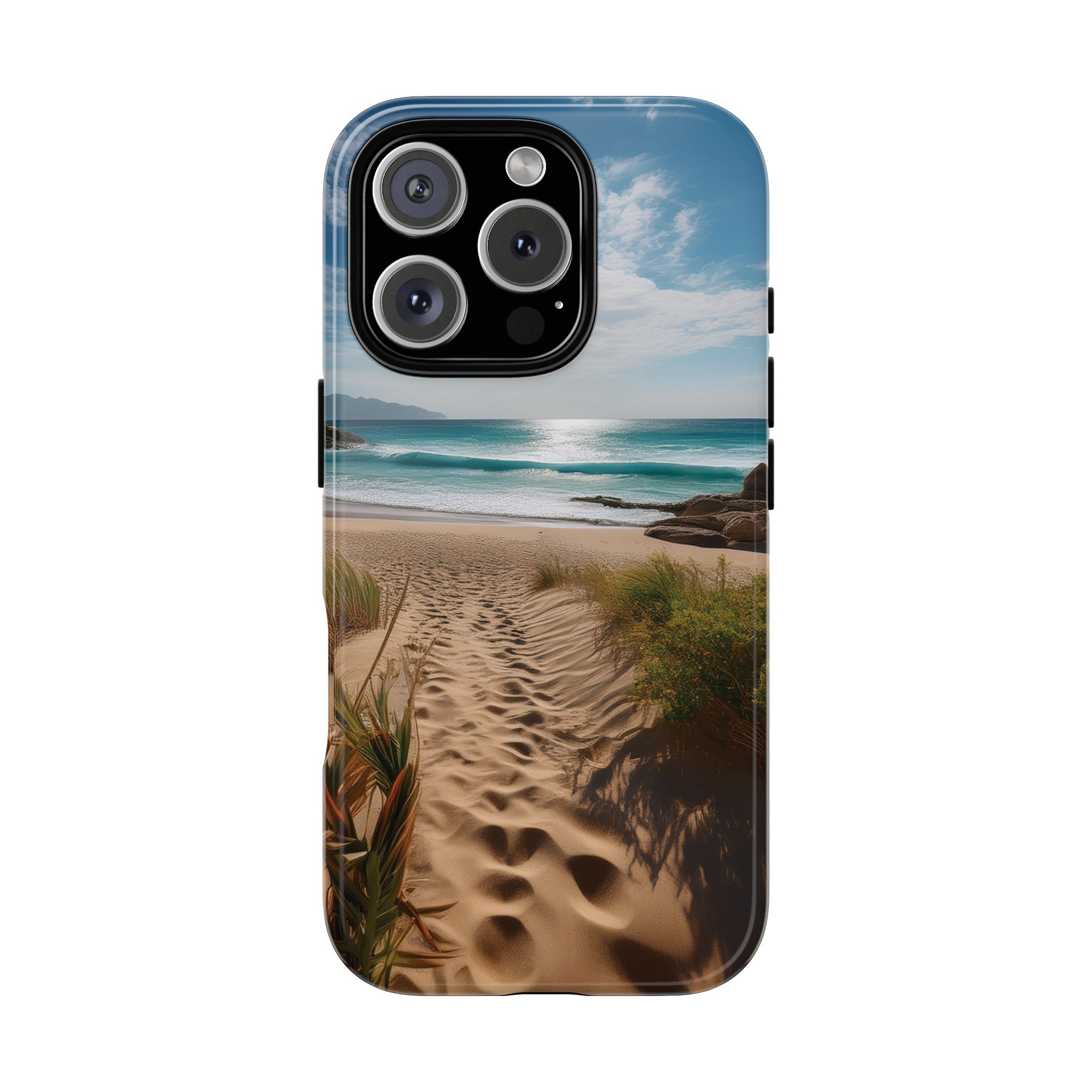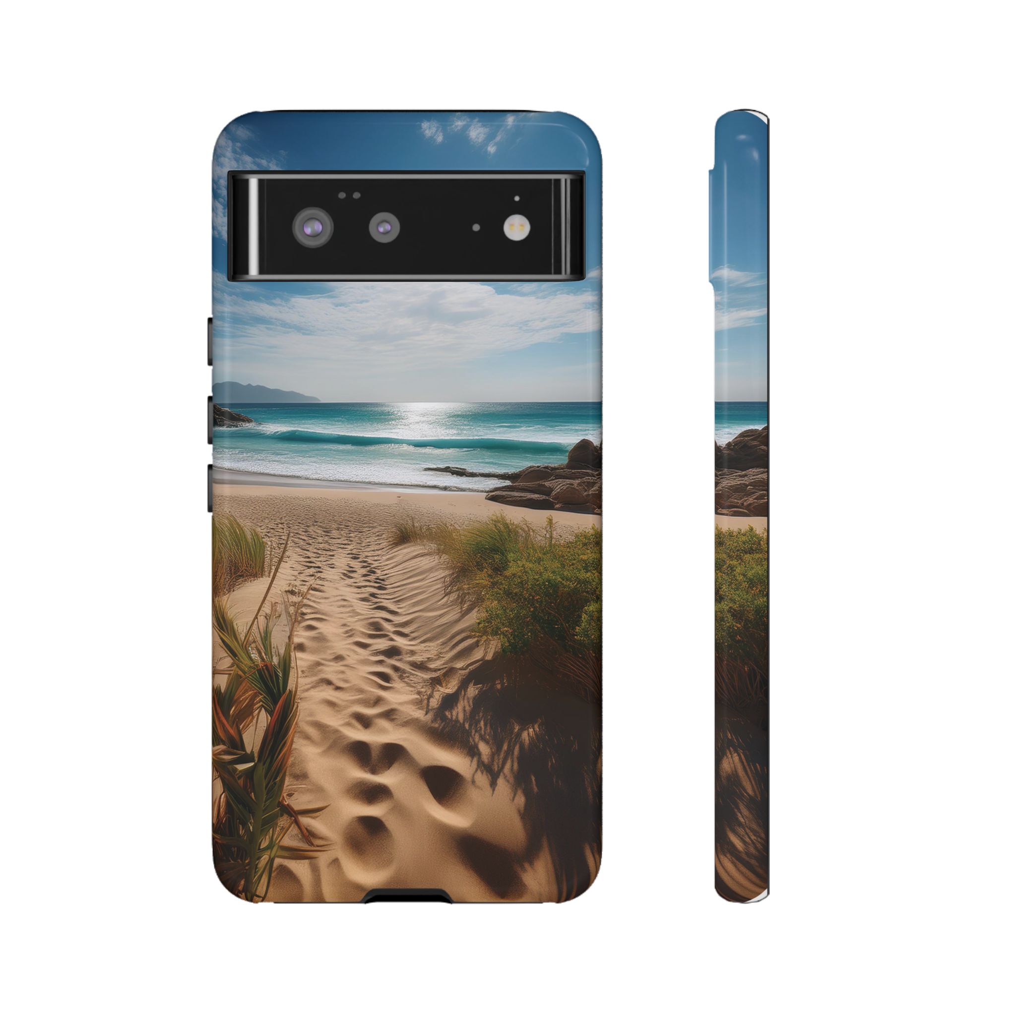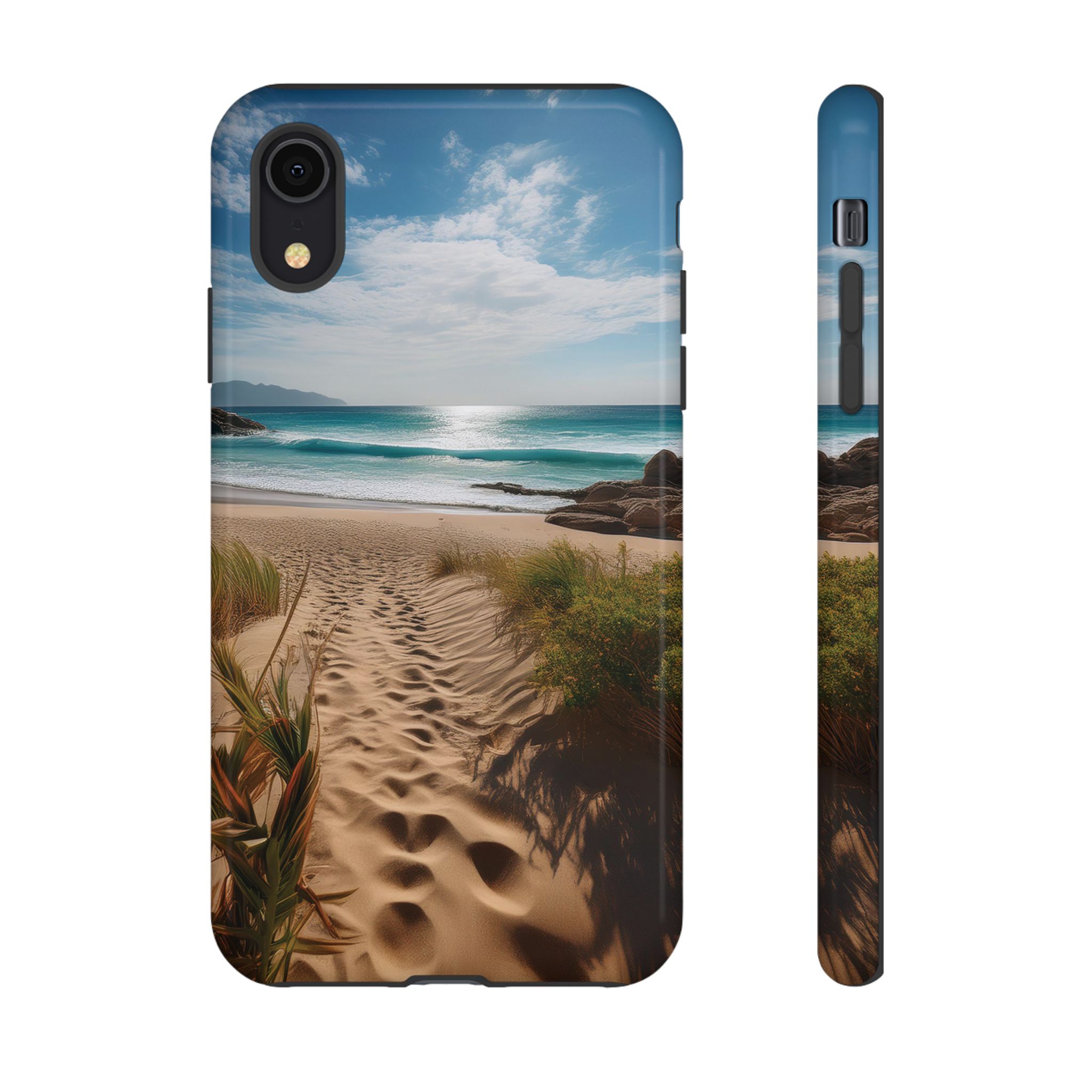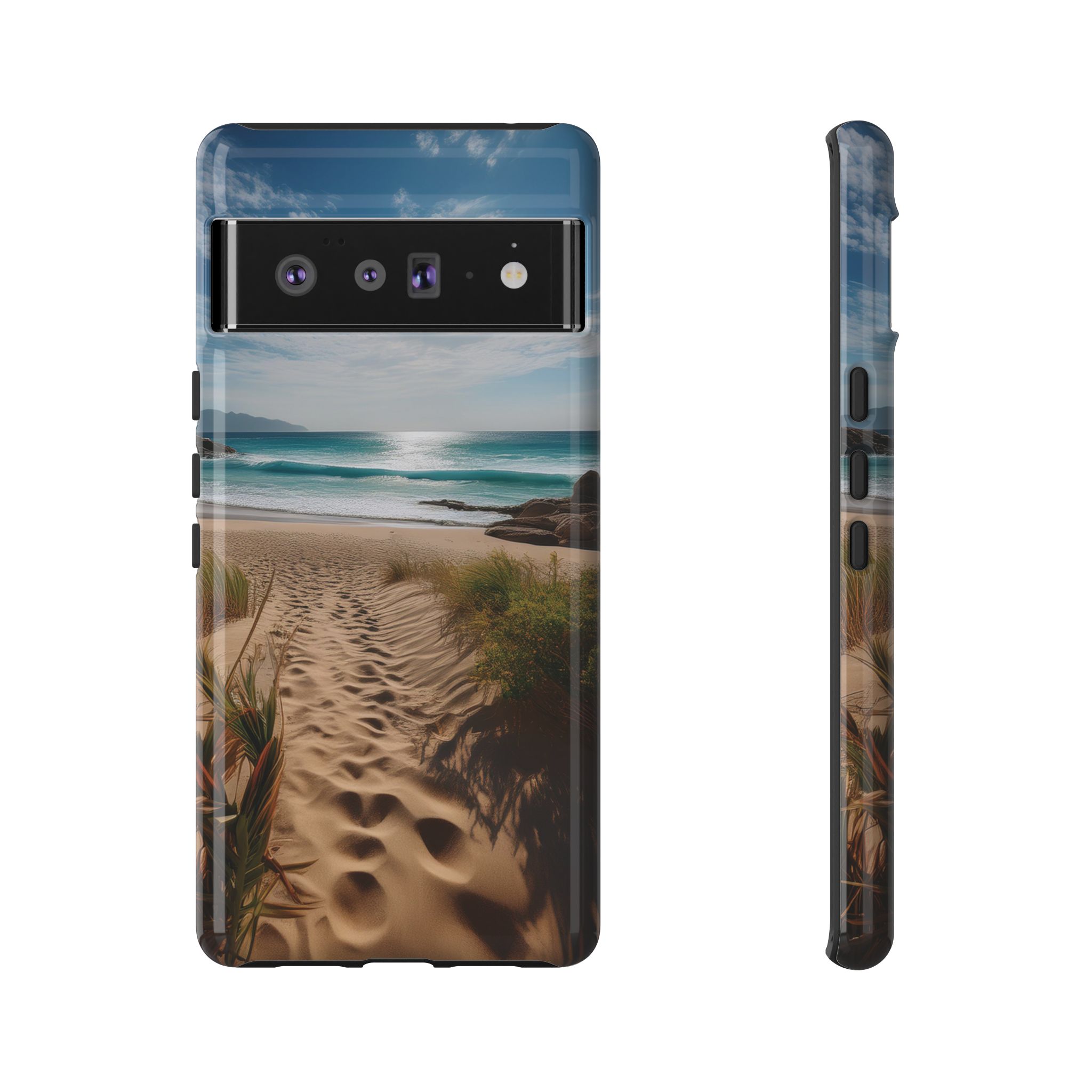Carry a piece of paradise with you wherever you go with this stunning phone case. Featuring a serene beach path leading to crystal-clear waves and a tranquil horizon, this design is perfect for anyone seeking a daily dose of calm and inspiration.