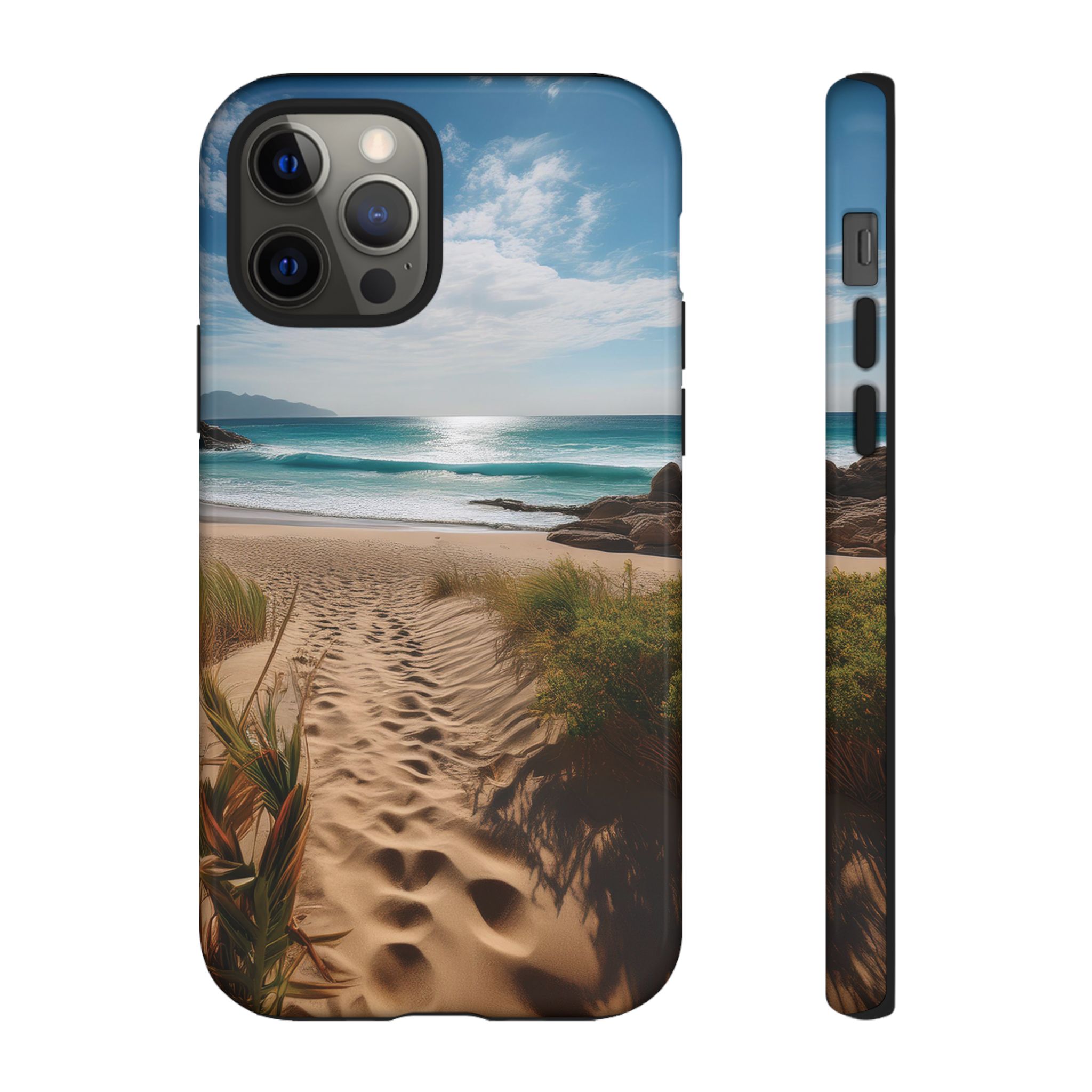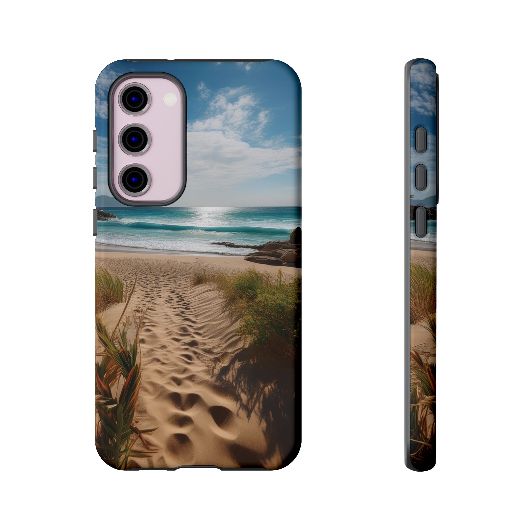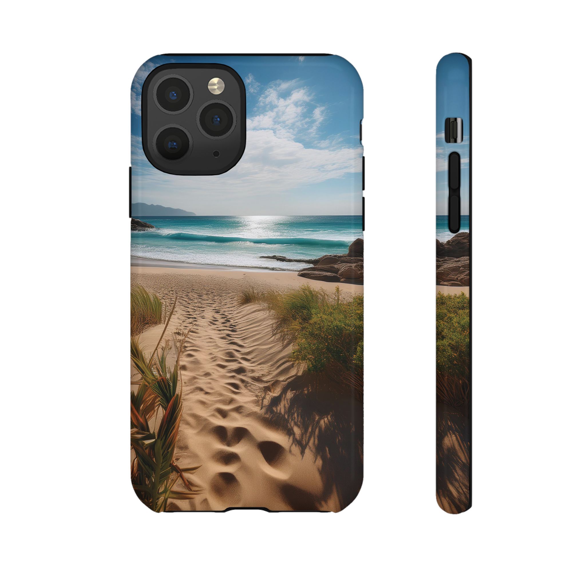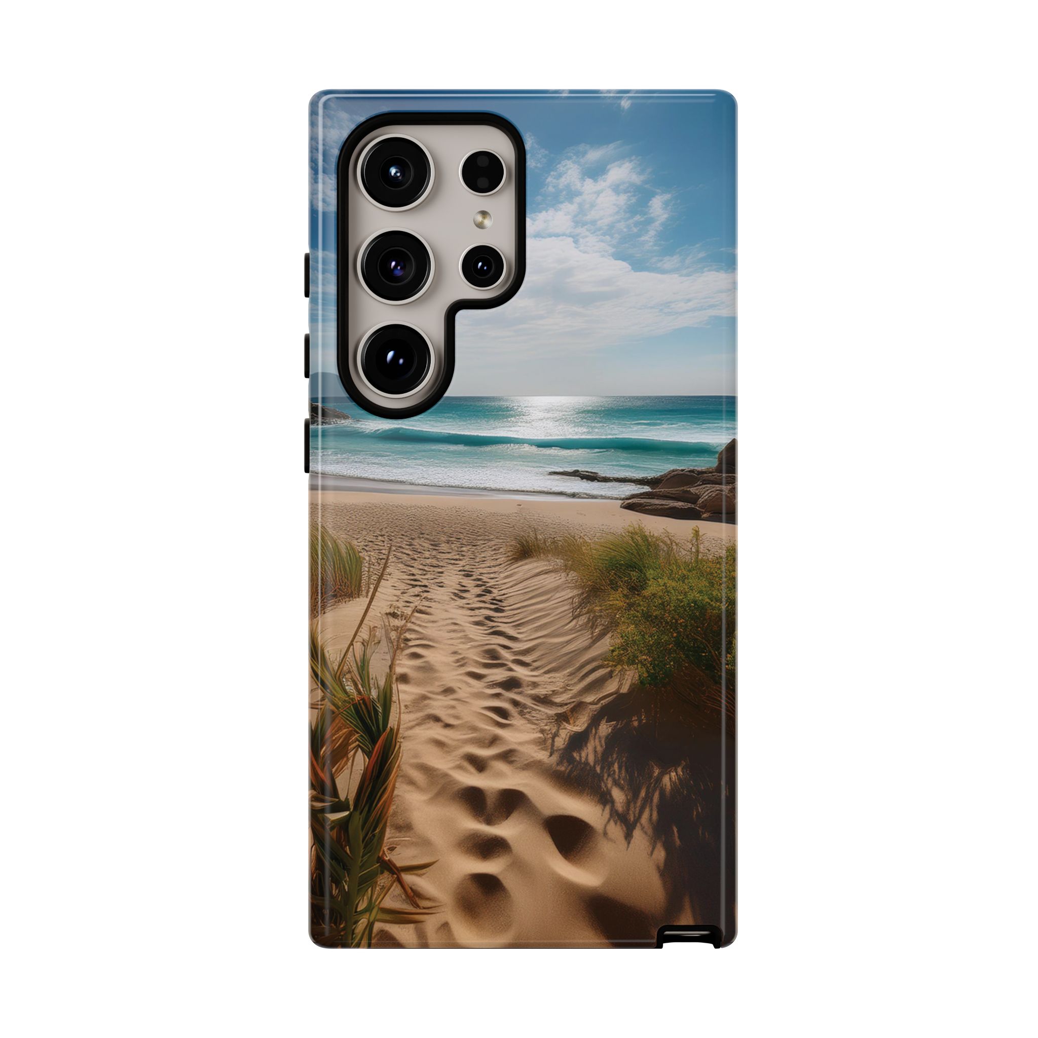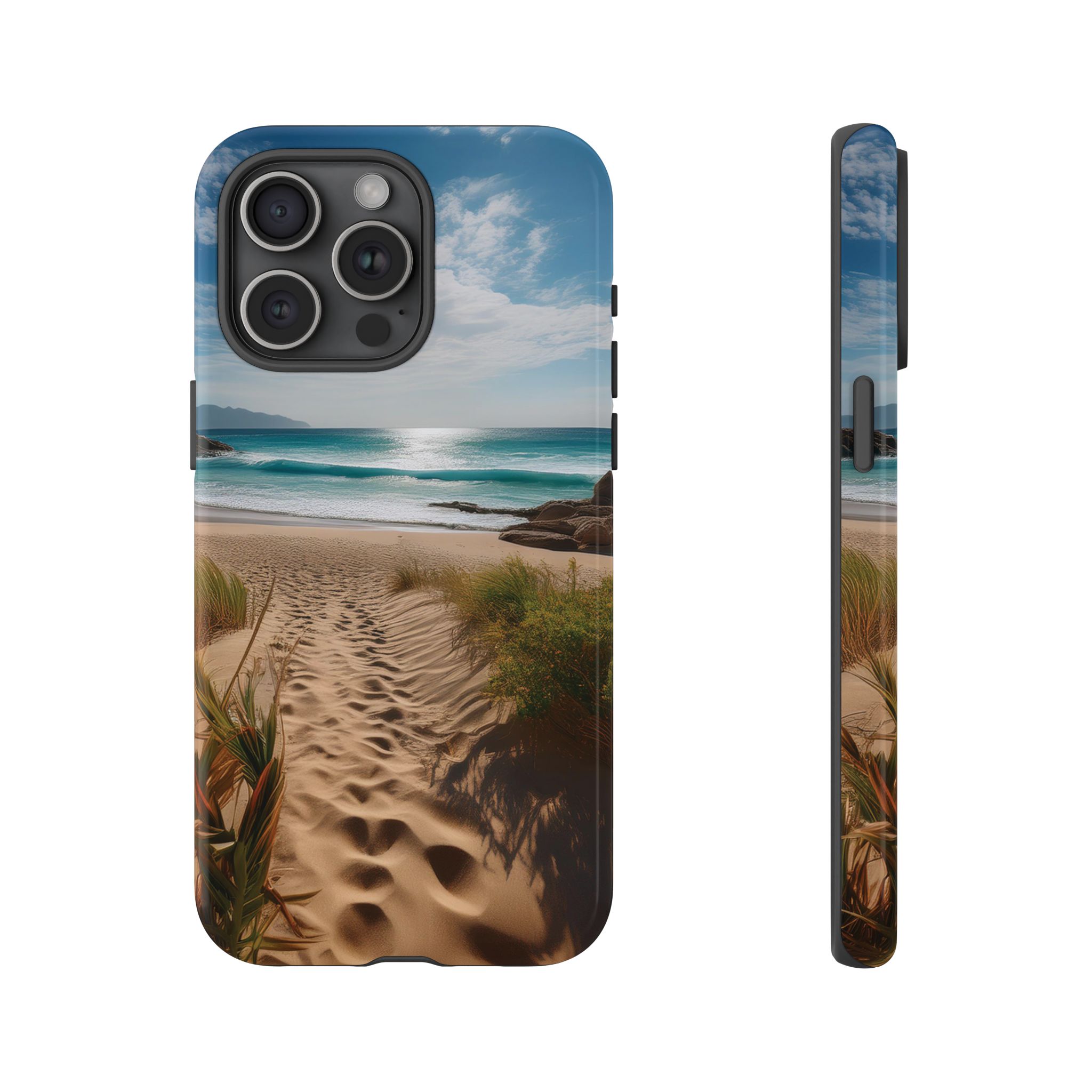 Carry a piece of paradise with you wherever you go with this stunning phone case. Featuring a serene beach path leading to crystal-clear waves and a tranquil horizon, this design is perfect for anyone seeking a daily dose of calm and inspiration.
