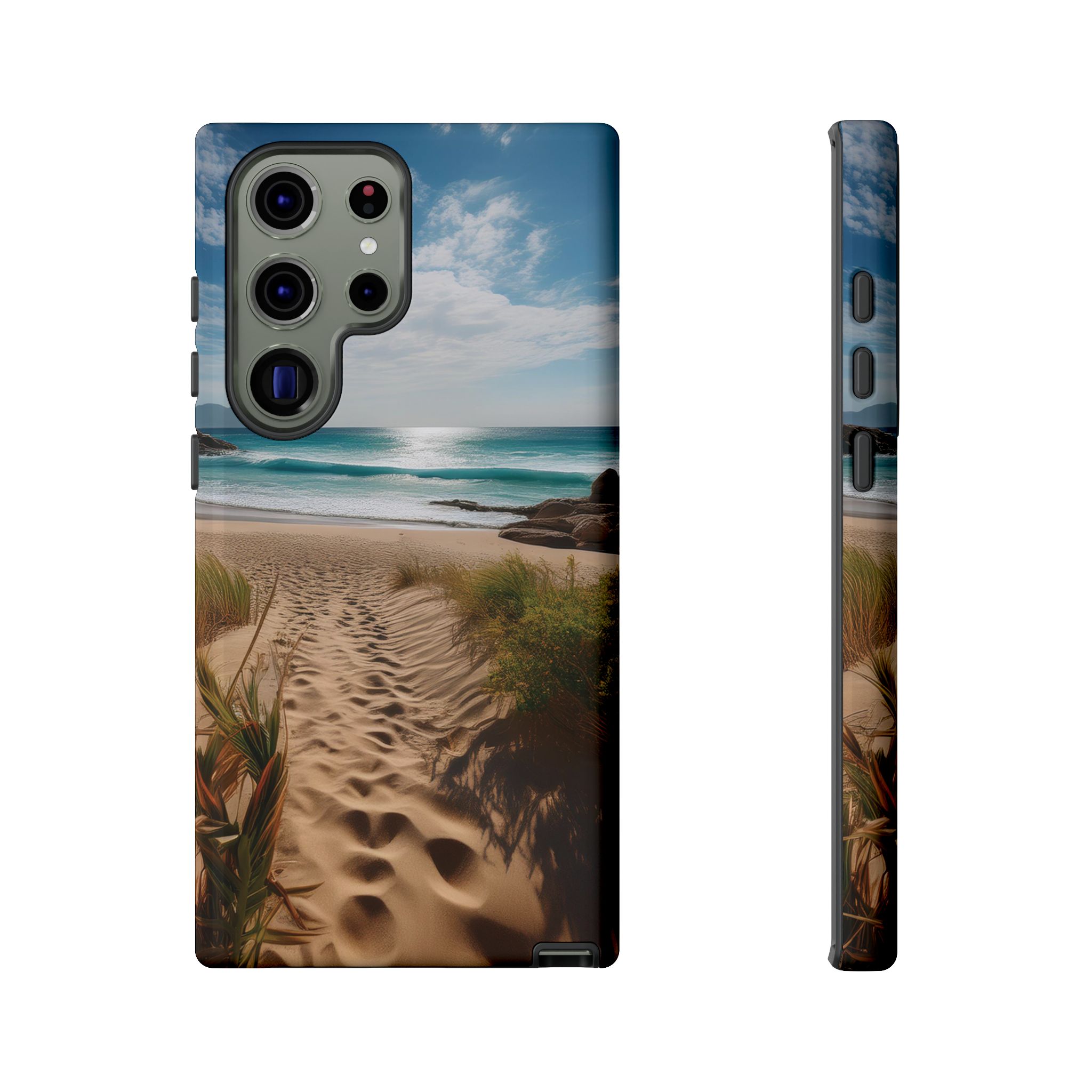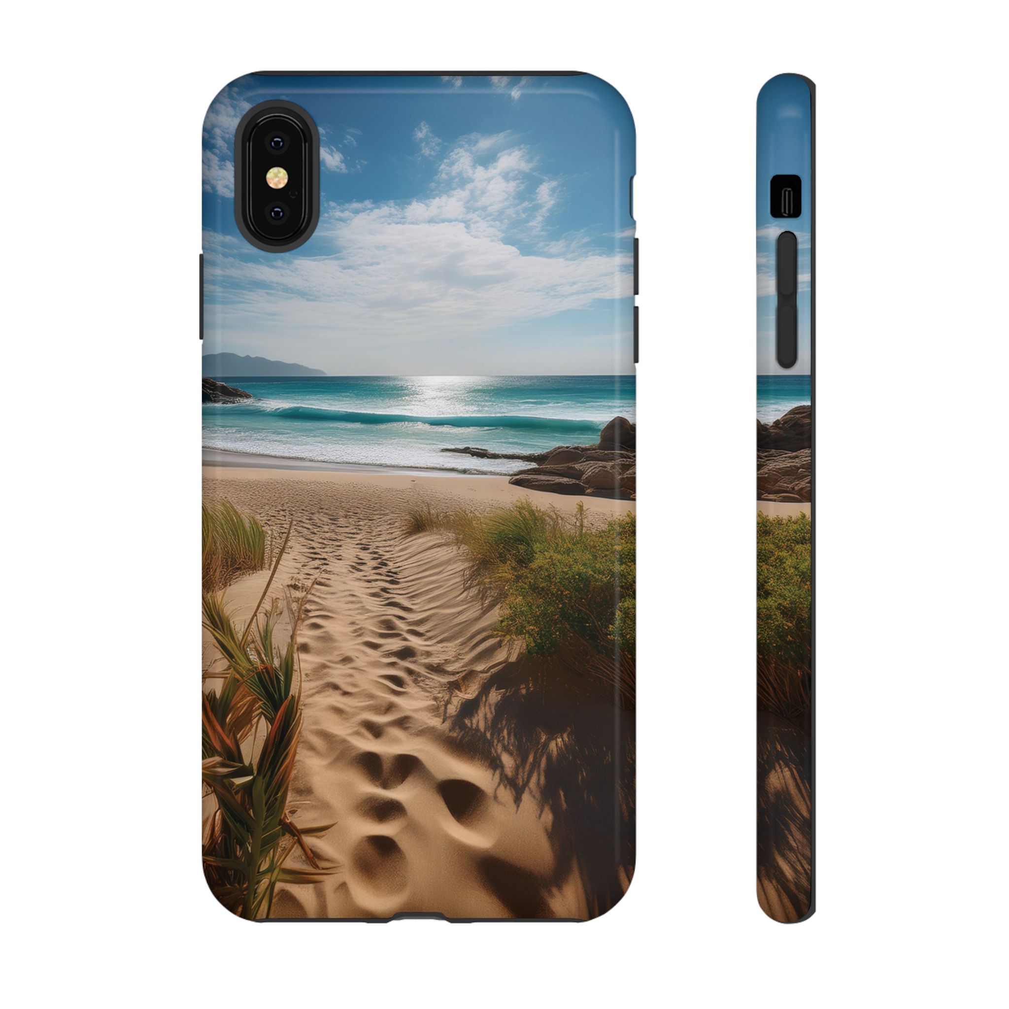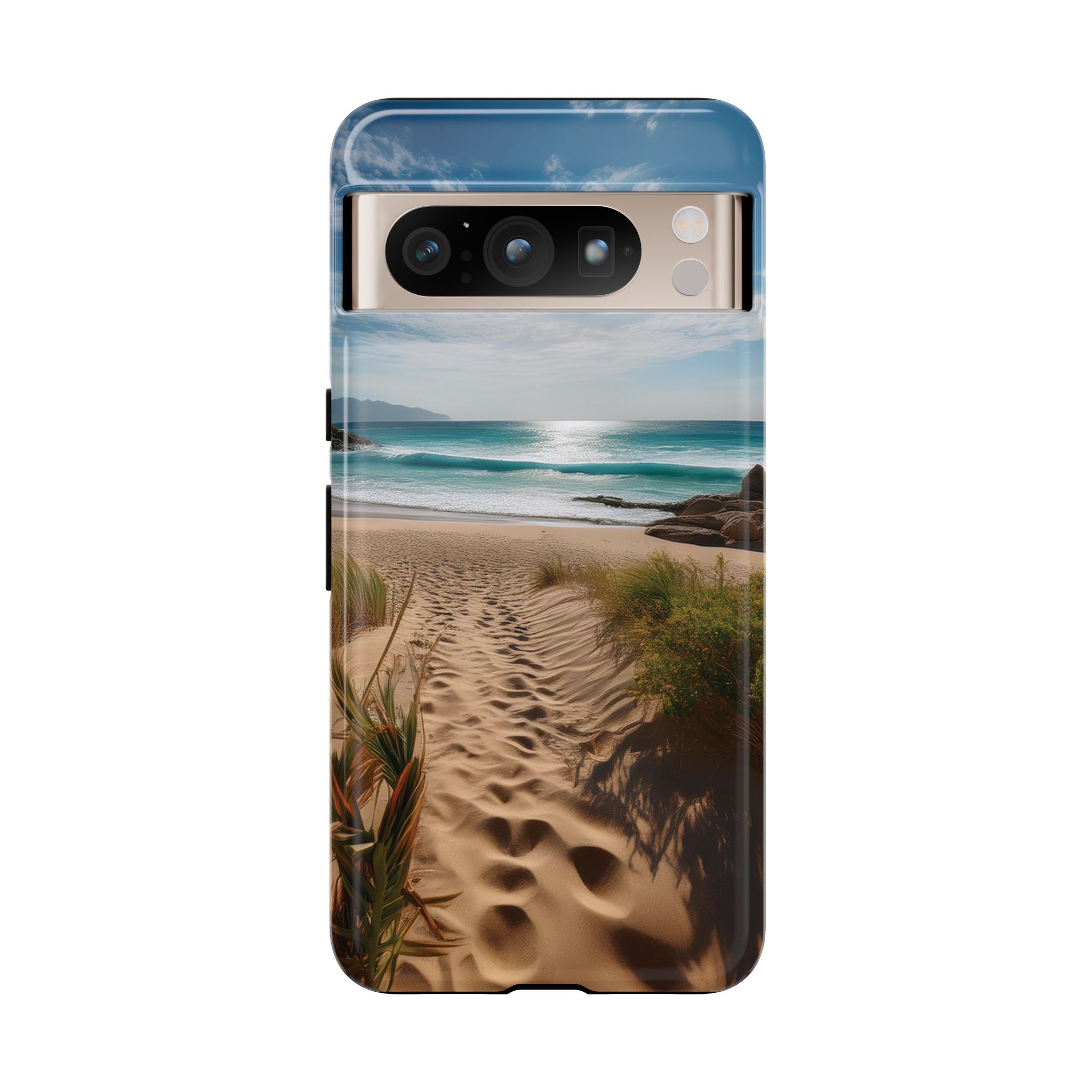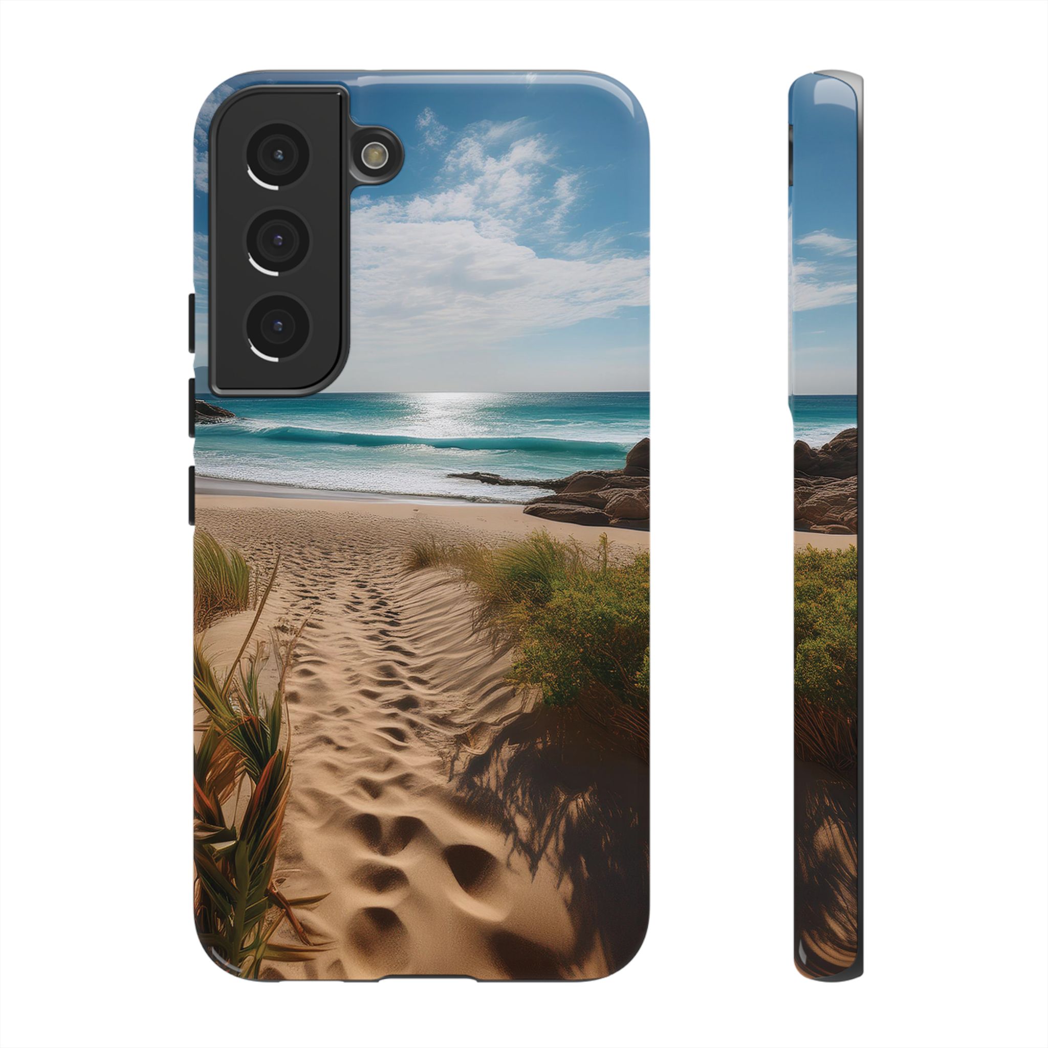 Carry a piece of paradise with you wherever you go with this stunning phone case. Featuring a serene beach path leading to crystal-clear waves and a tranquil horizon, this design is perfect for anyone seeking a daily dose of calm and inspiration.