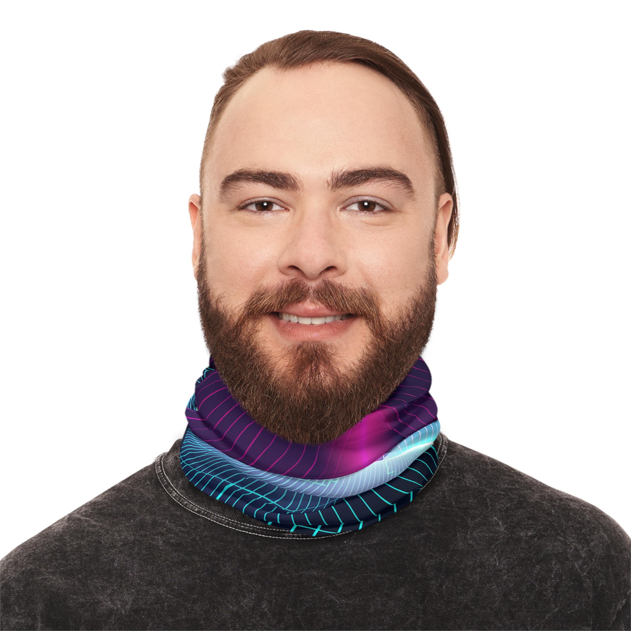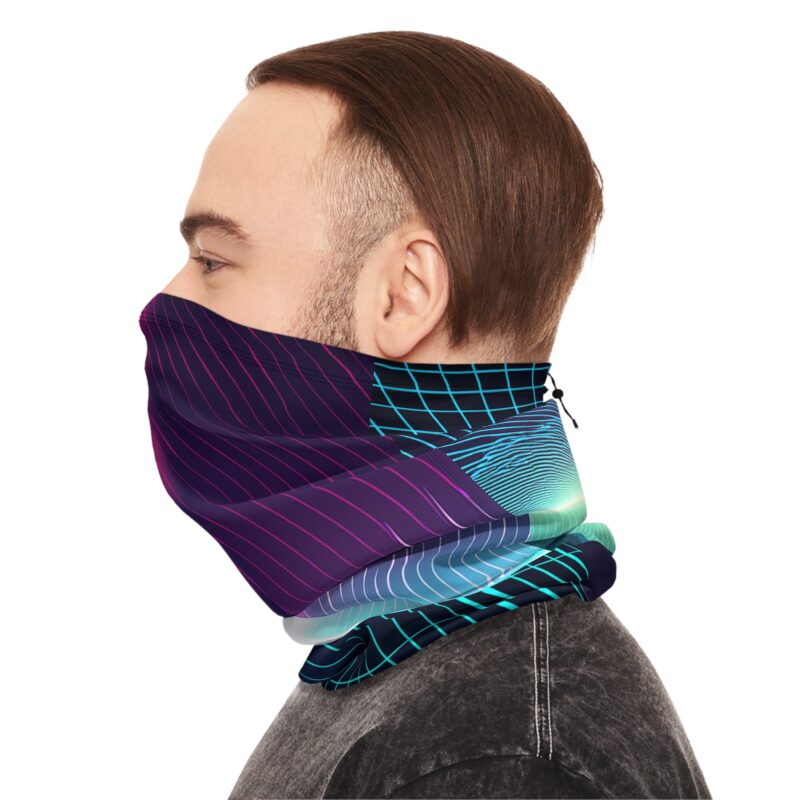 - Eye-Catching Design: The vibrant gradient tones and futuristic grid pattern make this gaiter a wearable work of art.