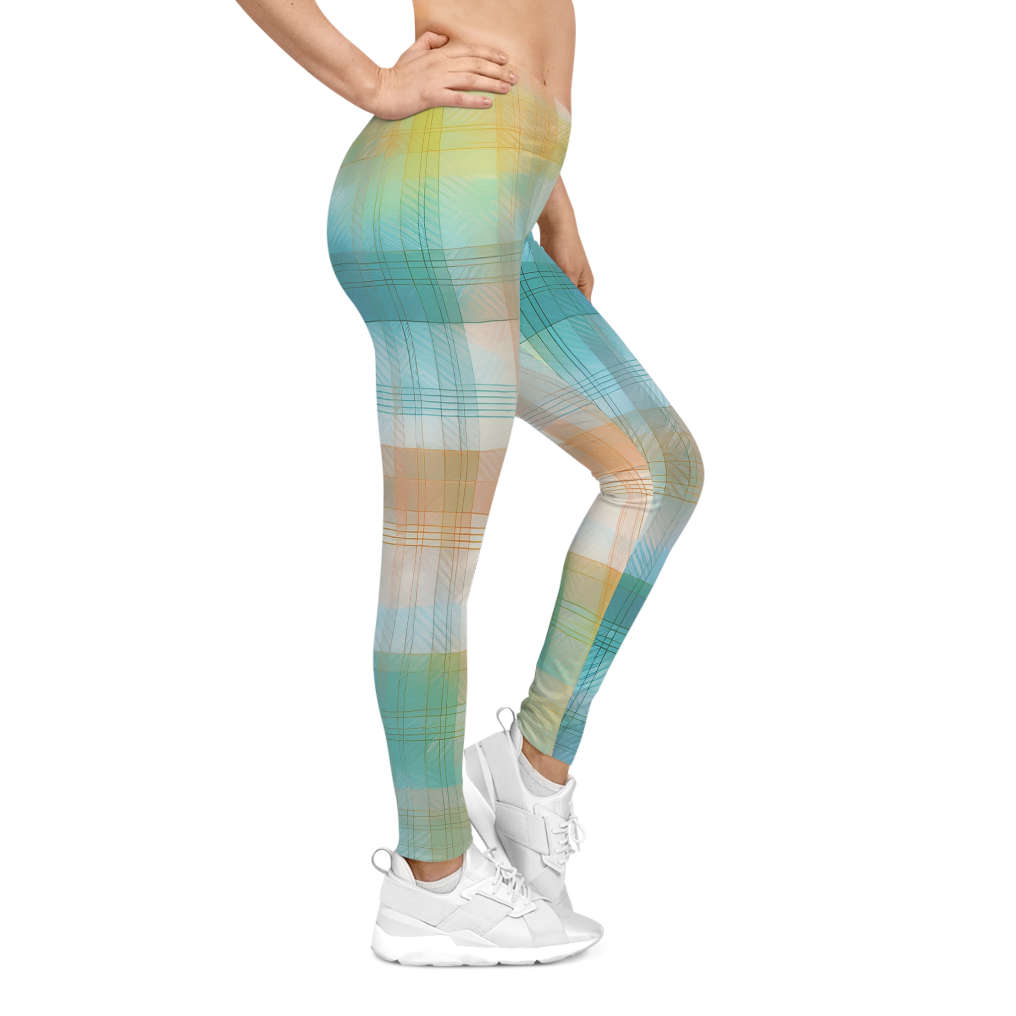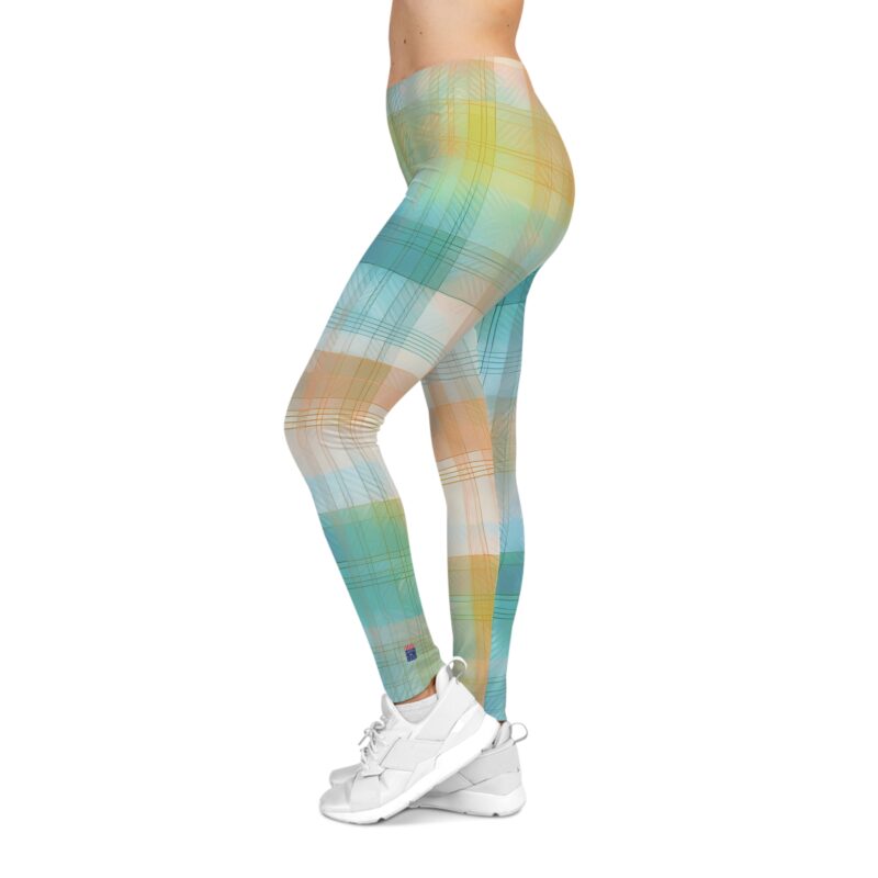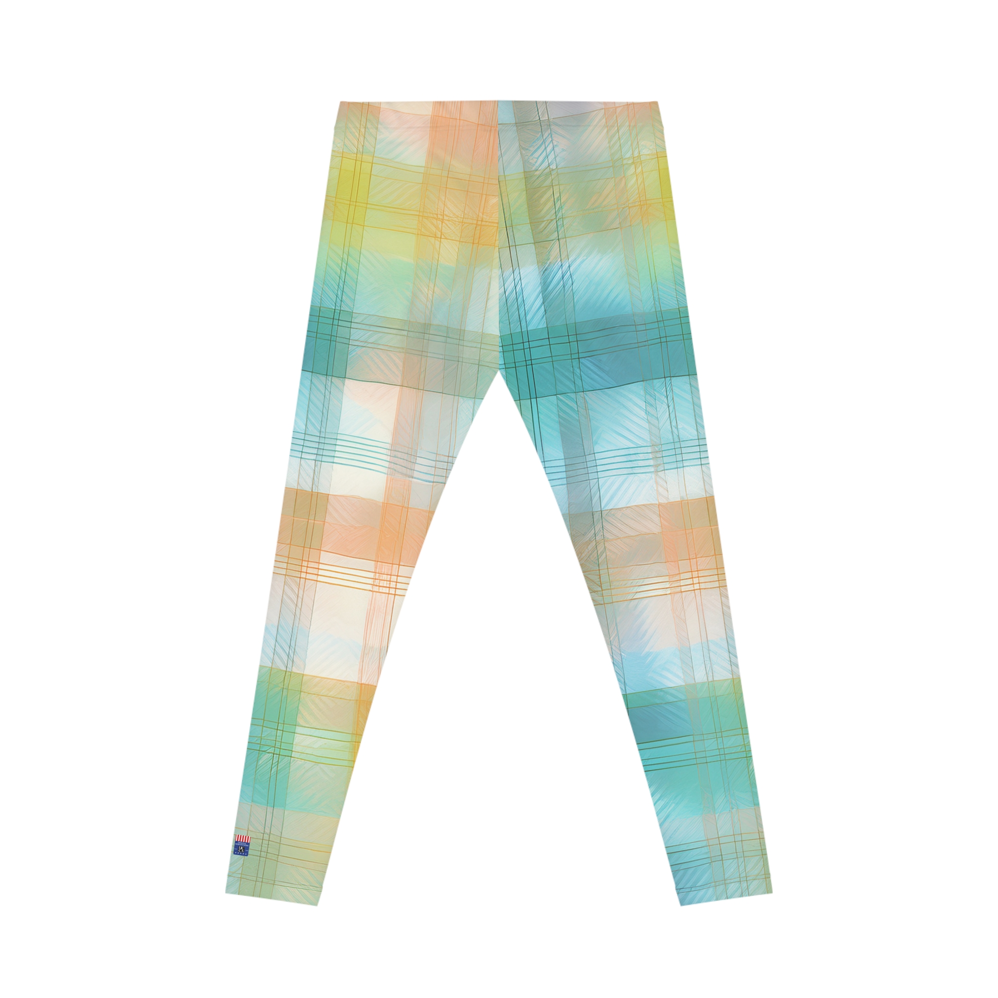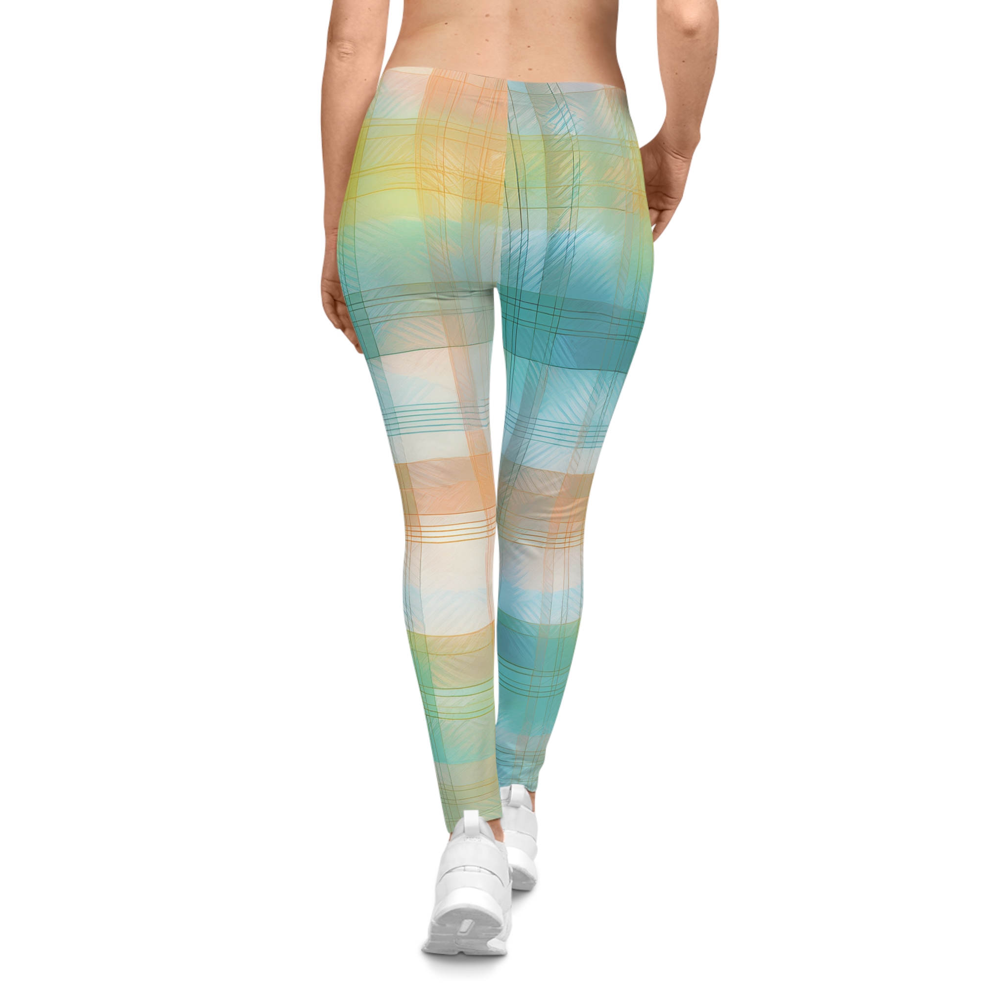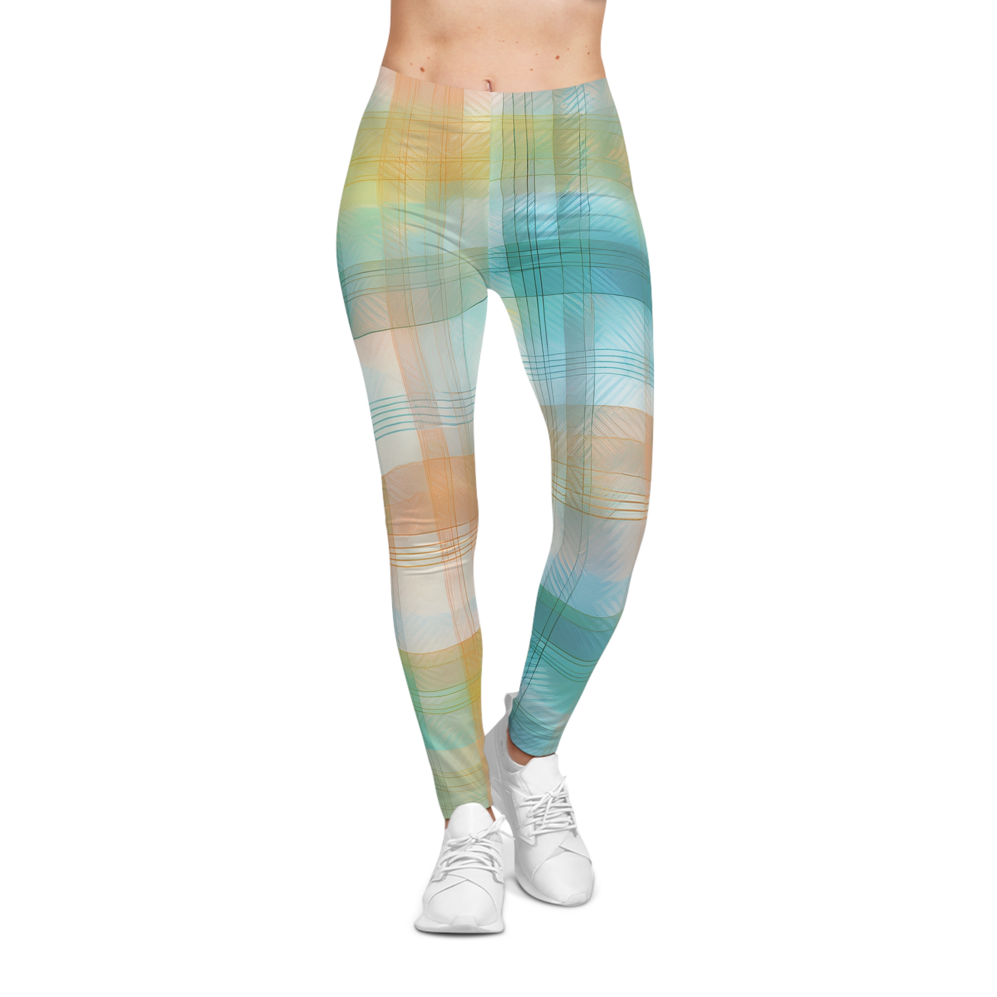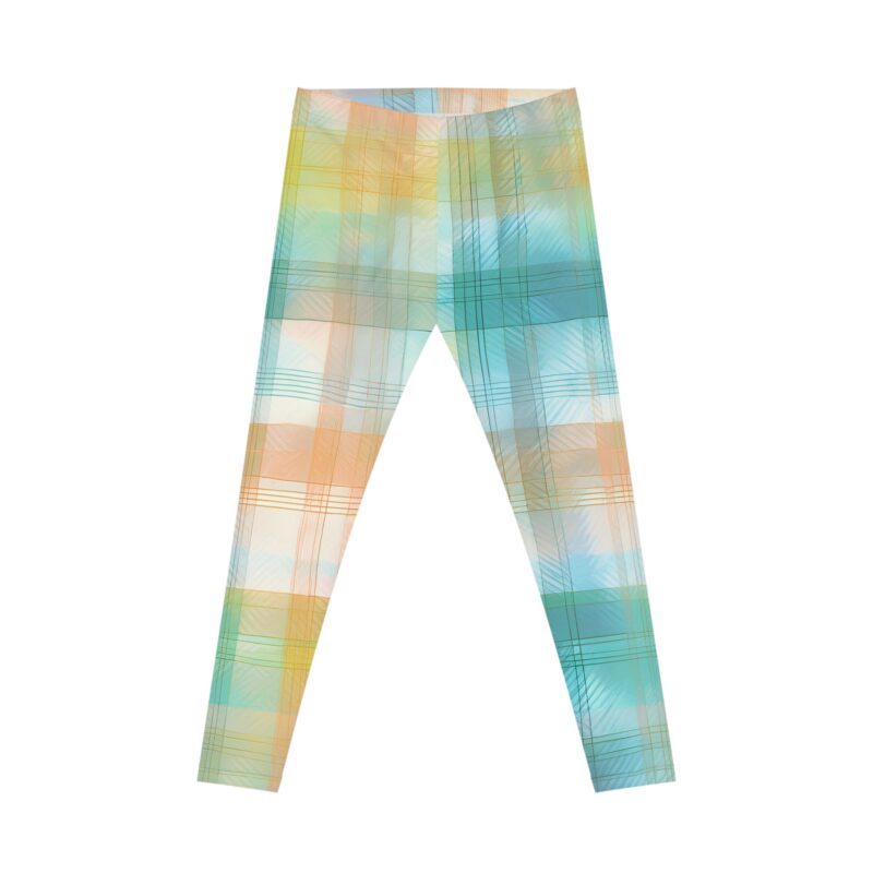 The Sunwashed Plaid Leggings bring soft-focus style to your most comfortable wardrobe staple. Inspired by classic gingham and watercolor washes, this dreamy pastel print blends aqua blues, golden ochres, and soft peach into a plaid pattern that feels like a summer sky.