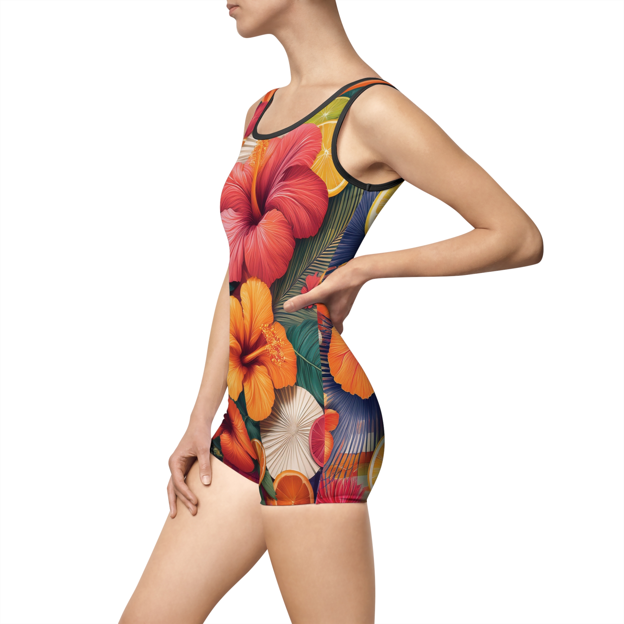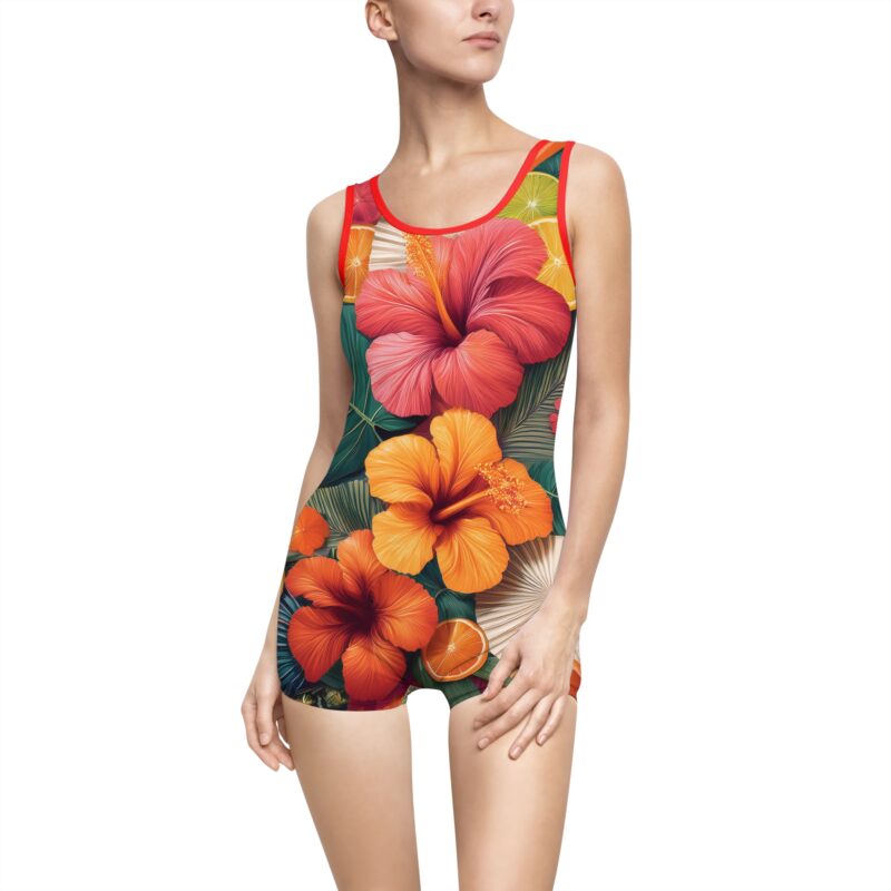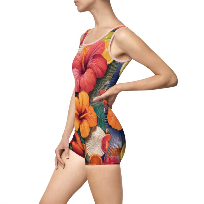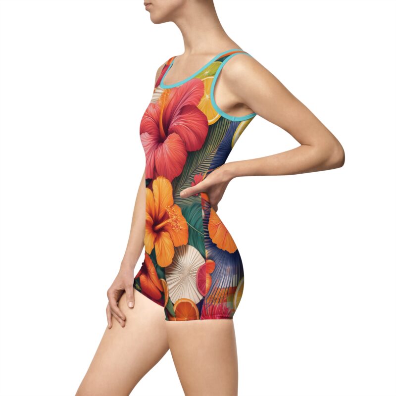 Crafted from a premium blend of 85% polyester and 15% spandex, the light fabric ensures a sleek, form-fitting silhouette that moves with you. Thanks to advanced heat sublimation technology, the vibrant design stays bold and beautiful, no matter how much fun you have in the water or sun.